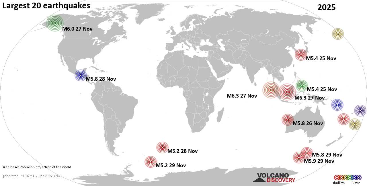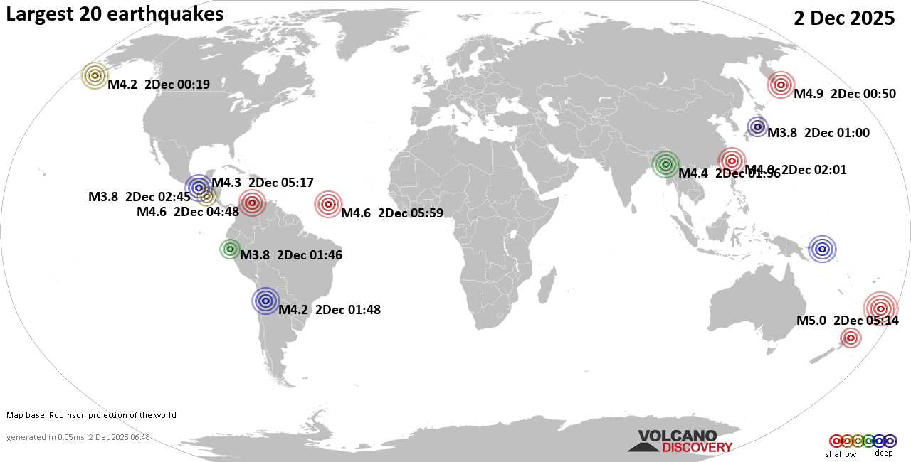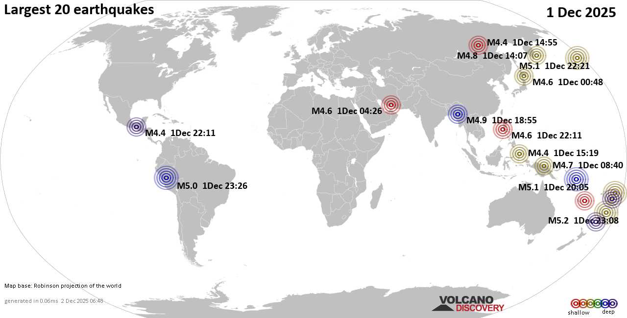 По данным Геологической службы Соединенных Штатов (USGS), ежегодно в мире происходит в среднем около 500000 обнаруживаемых землетрясений, или около 1400 землетрясений в день.