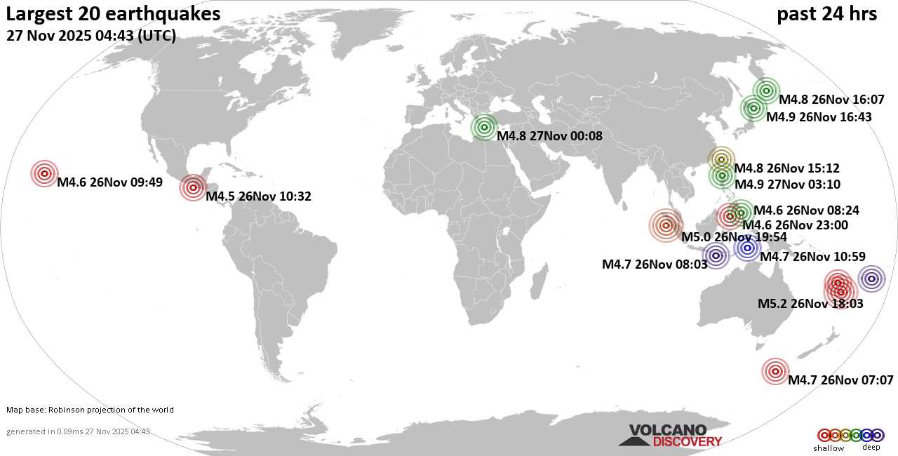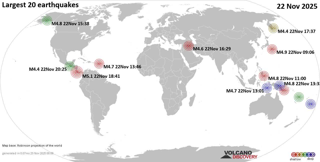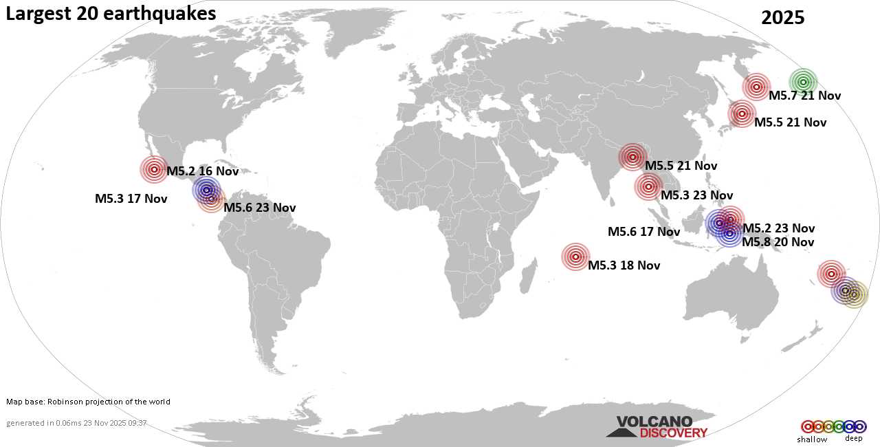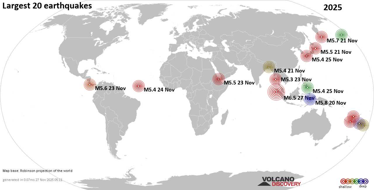 По данным Геологической службы Соединенных Штатов (USGS), ежегодно в мире происходит в среднем около 500000 обнаруживаемых землетрясений, или около 1400 землетрясений в день.