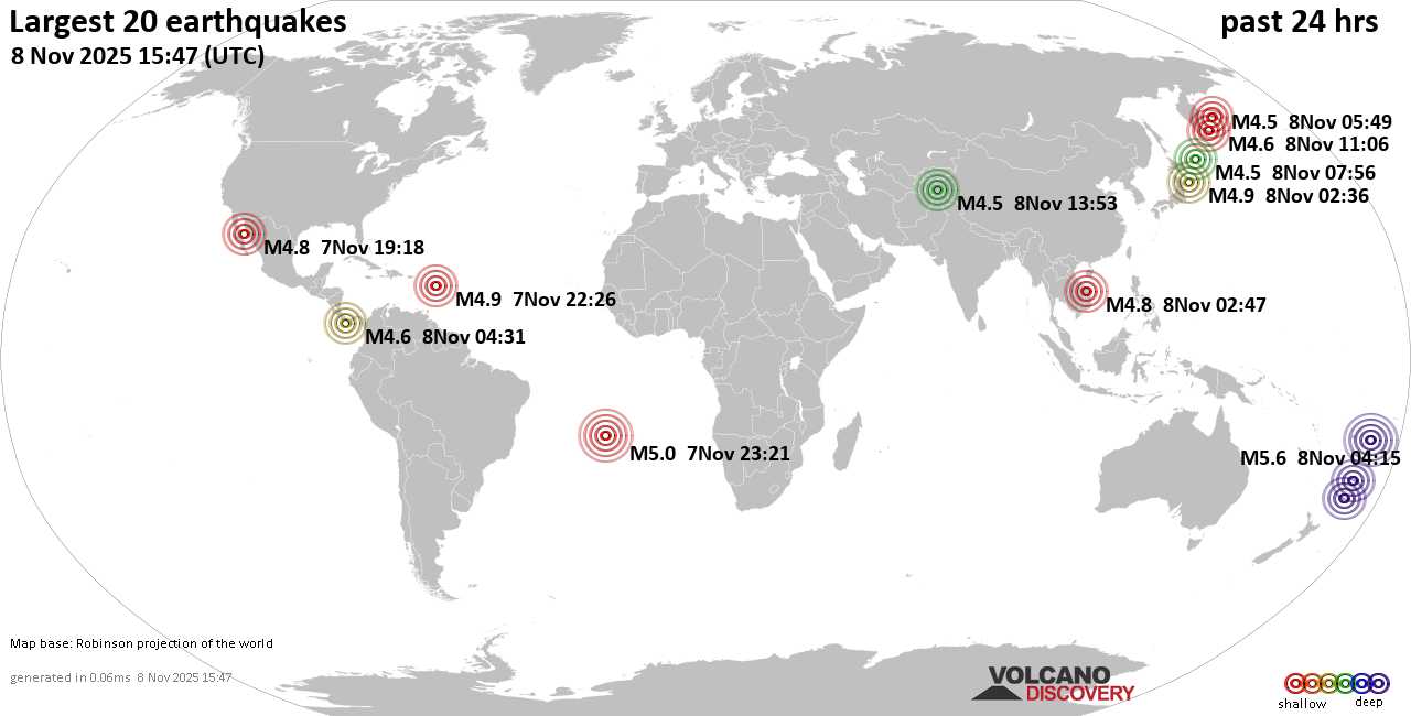 По данным Геологической службы Соединенных Штатов (USGS), ежегодно в мире происходит в среднем около 500000 обнаруживаемых землетрясений, или около 1400 землетрясений в день.