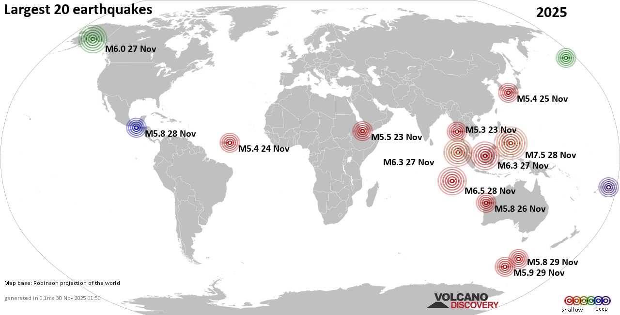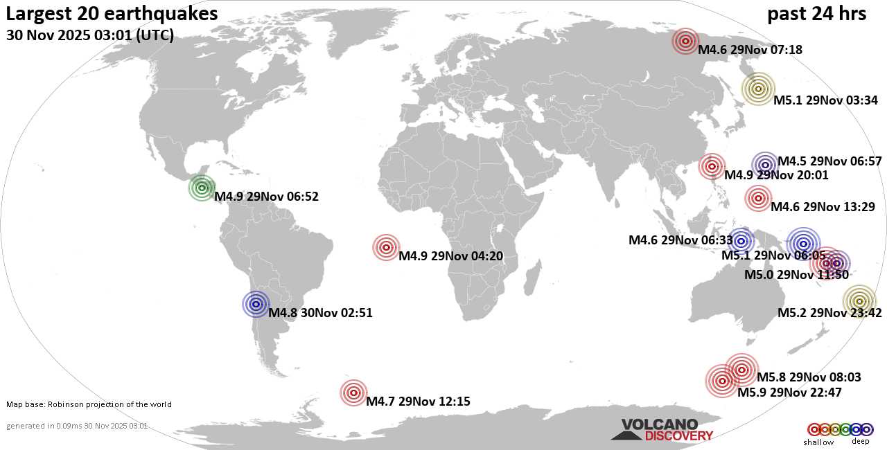 Землетрясения сегодня на карте: последние сильные землетрясения, 30 ноября 2025 года