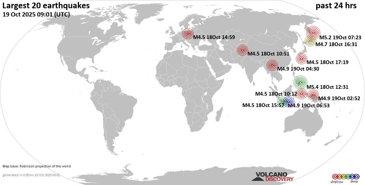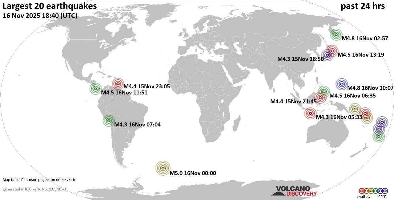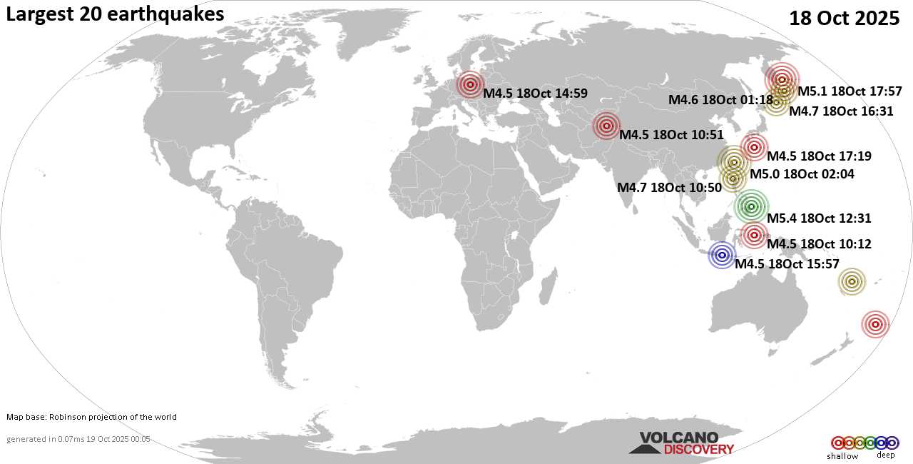 По данным Геологической службы Соединенных Штатов (USGS), ежегодно в мире происходит в среднем около 500000 обнаруживаемых землетрясений, или около 1400 землетрясений в день.