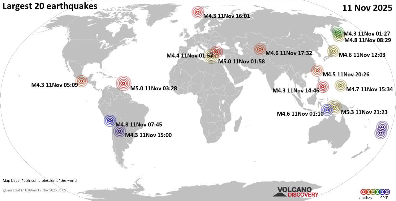 Землетрясения вчера на карте: сильные землетрясения, 11 ноября 2025 года