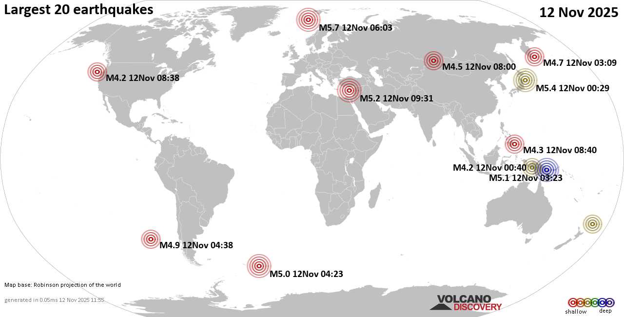 Землетрясения сегодня на карте: последние сильные землетрясения, 12 ноября 2025 года