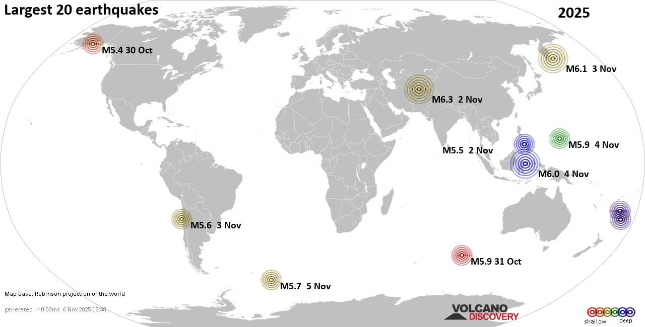 Землетрясения сегодня на карте: последние сильные землетрясения, 6 ноября 2025 года