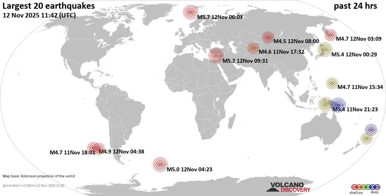 Землетрясения сегодня на карте: сильные землетрясения, 12 ноября 2025 года