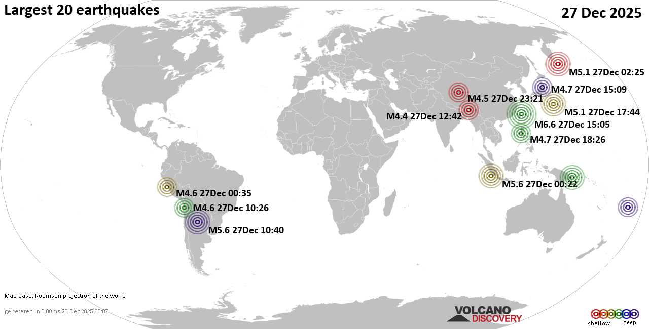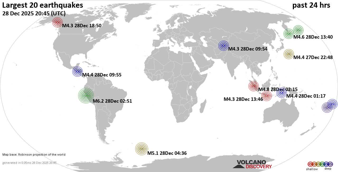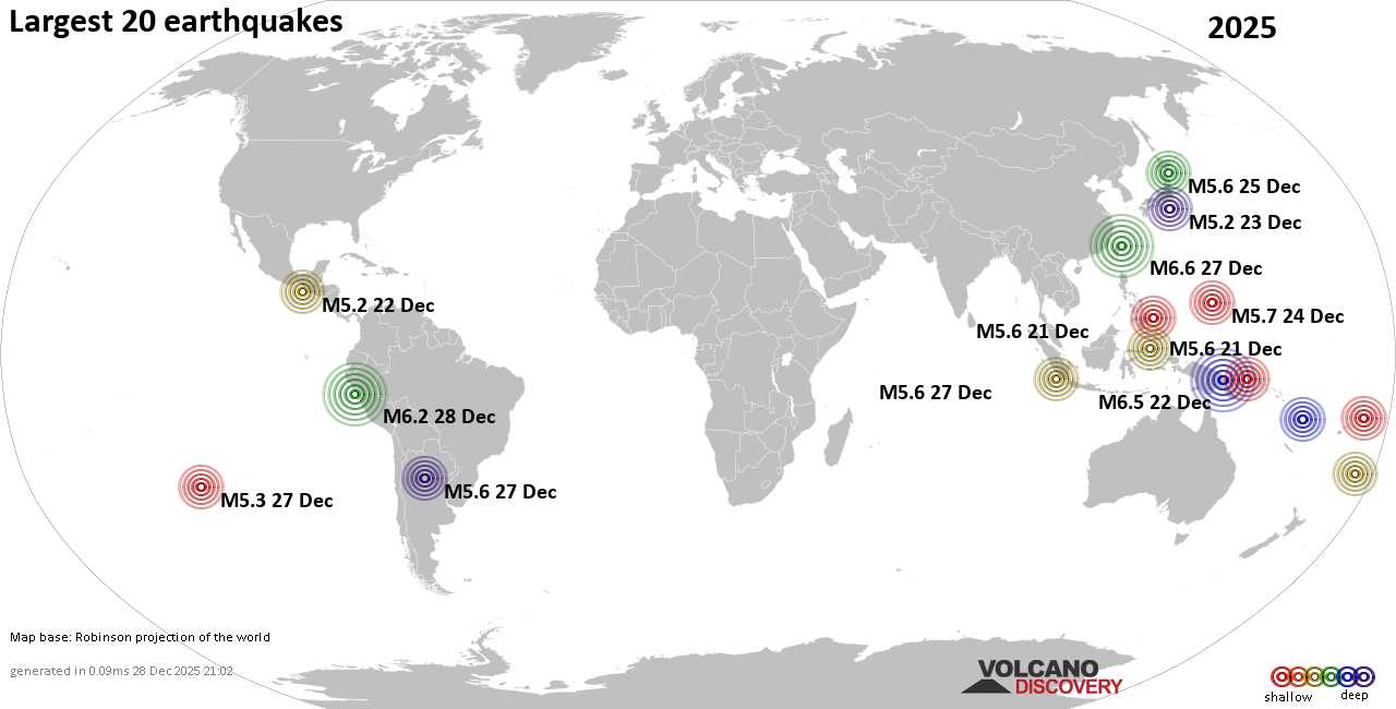 По данным Геологической службы Соединенных Штатов (USGS), ежегодно в мире происходит в среднем около 500000 обнаруживаемых землетрясений, или около 1400 землетрясений в день.