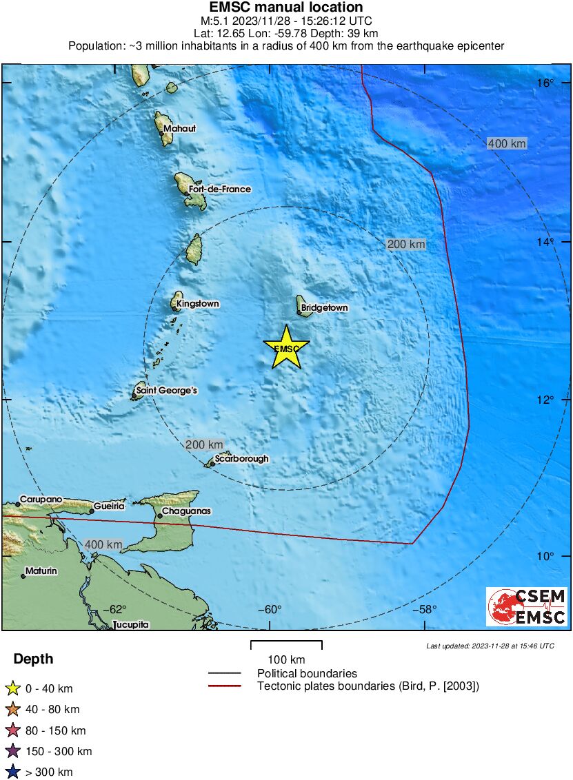 Землетрясение Barbados region, Windward Islands