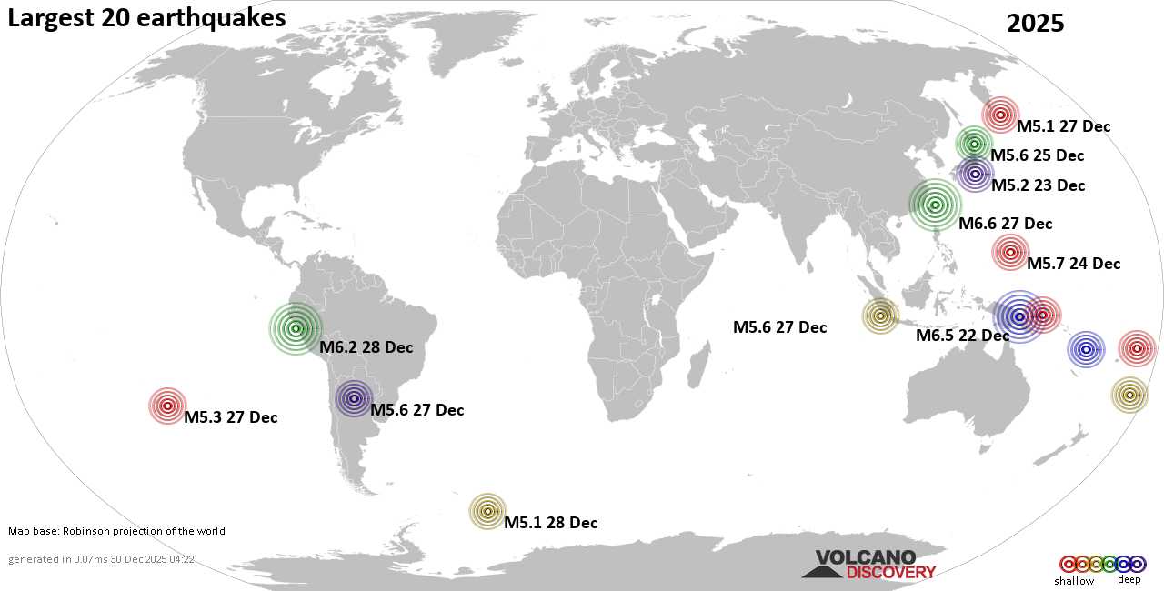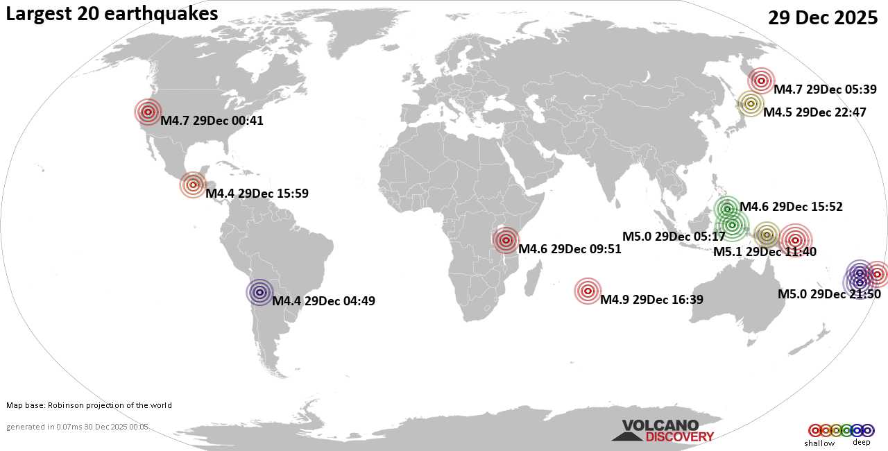 По данным Геологической службы Соединенных Штатов (USGS), ежегодно в мире происходит в среднем около 500000 обнаруживаемых землетрясений, или около 1400 землетрясений в день.