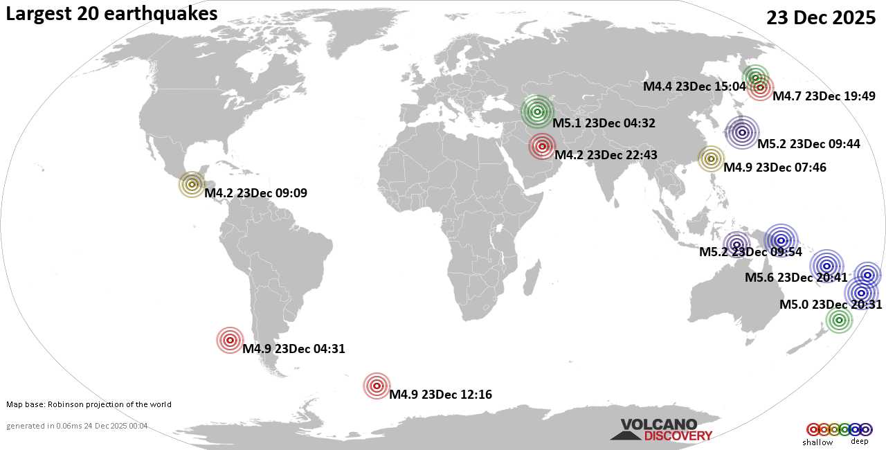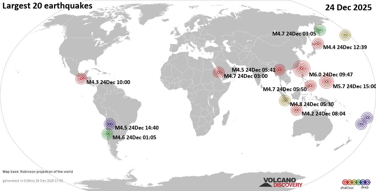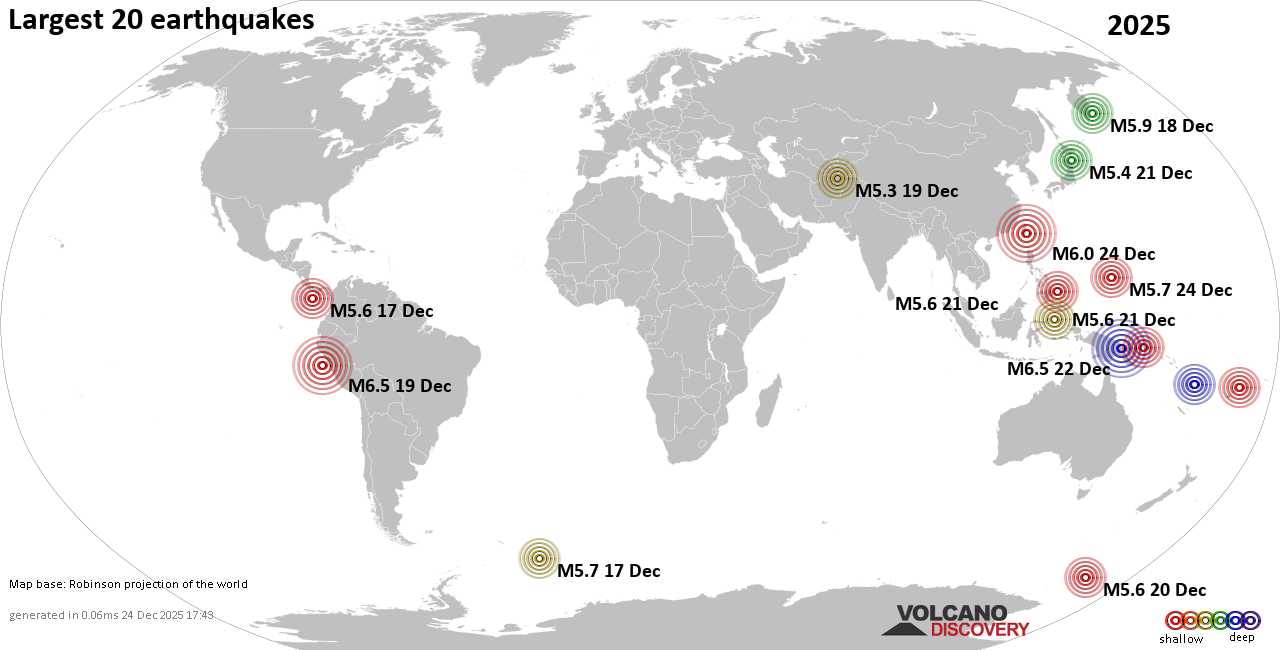 По данным Геологической службы Соединенных Штатов (USGS), ежегодно в мире происходит в среднем около 500000 обнаруживаемых землетрясений, или около 1400 землетрясений в день.