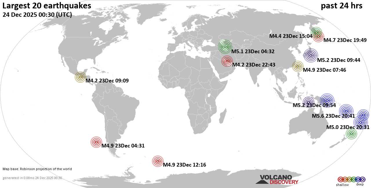 По данным Геологической службы Соединенных Штатов (USGS), ежегодно в мире происходит в среднем около 500000 обнаруживаемых землетрясений, или около 1400 землетрясений в день.