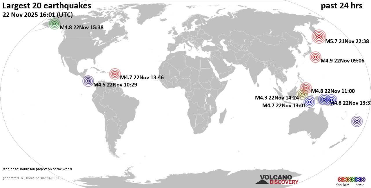 Землетрясения вчера на карте: сильные землетрясения, 21 ноября 2025 года