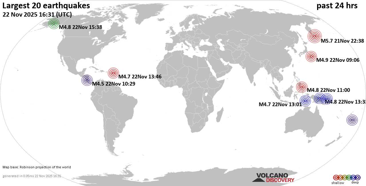 Землетрясения сегодня на карте: последние сильные землетрясения, 22 ноября 2025 года