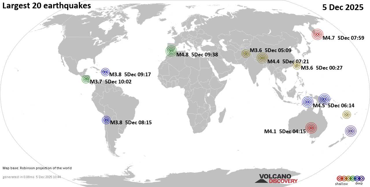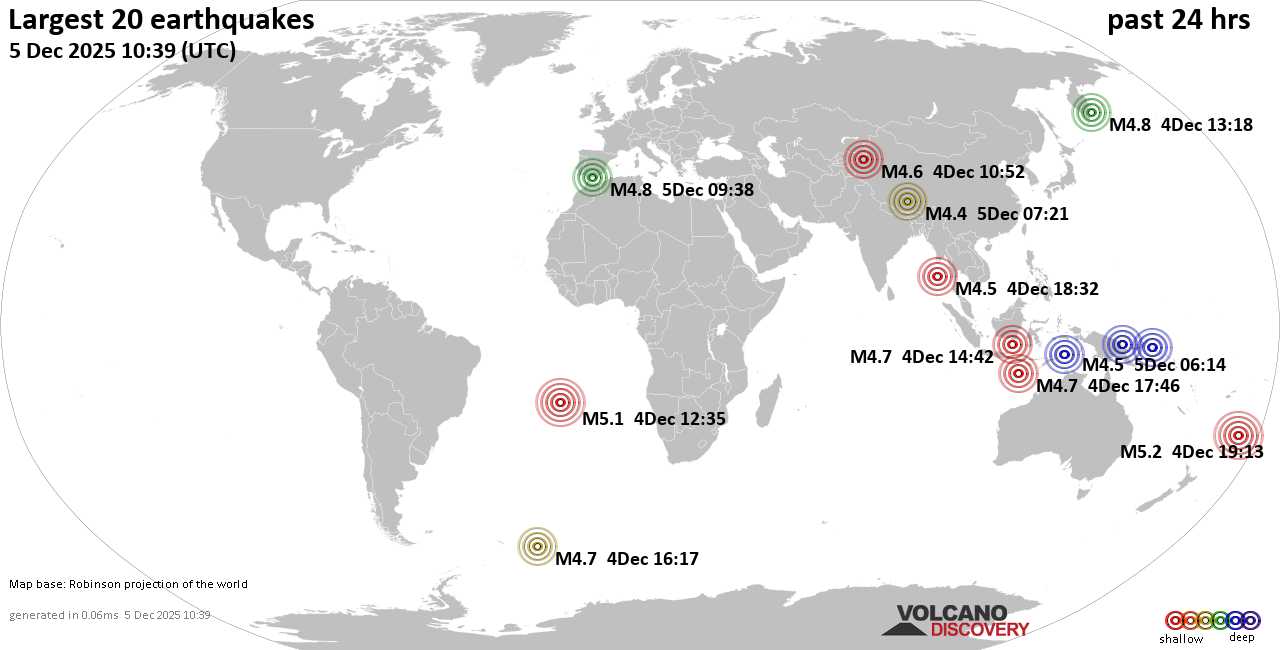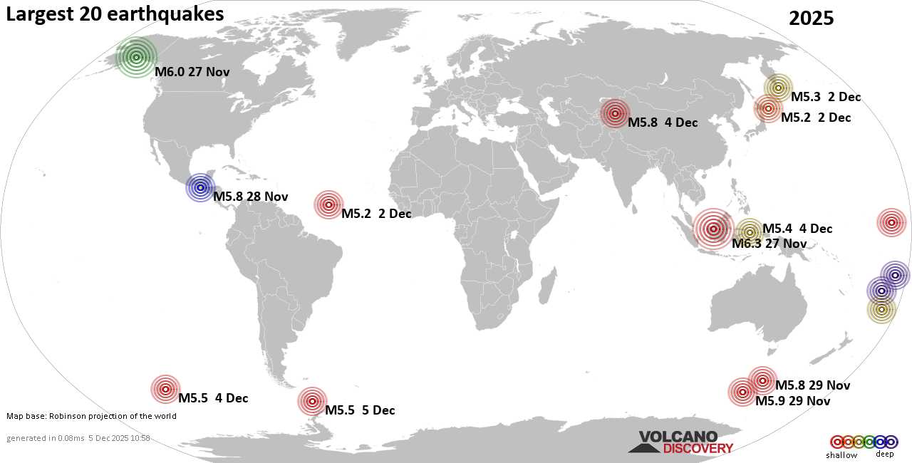 Землетрясения сегодня на карте: последние сильные землетрясения, 5 декабря 2025 года