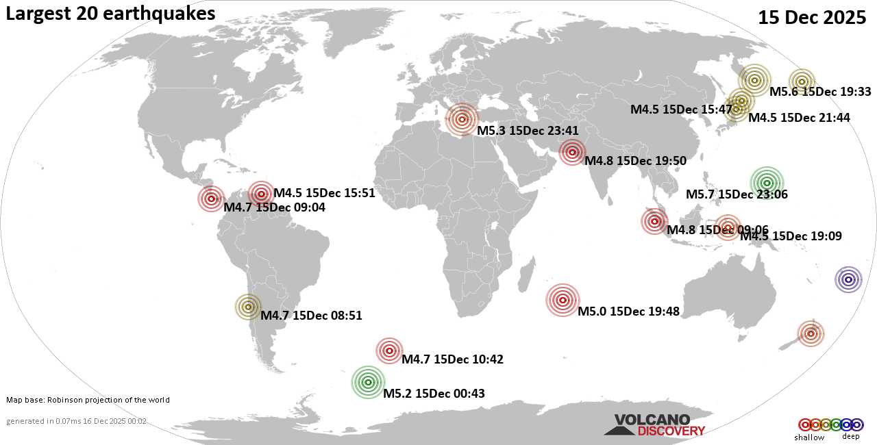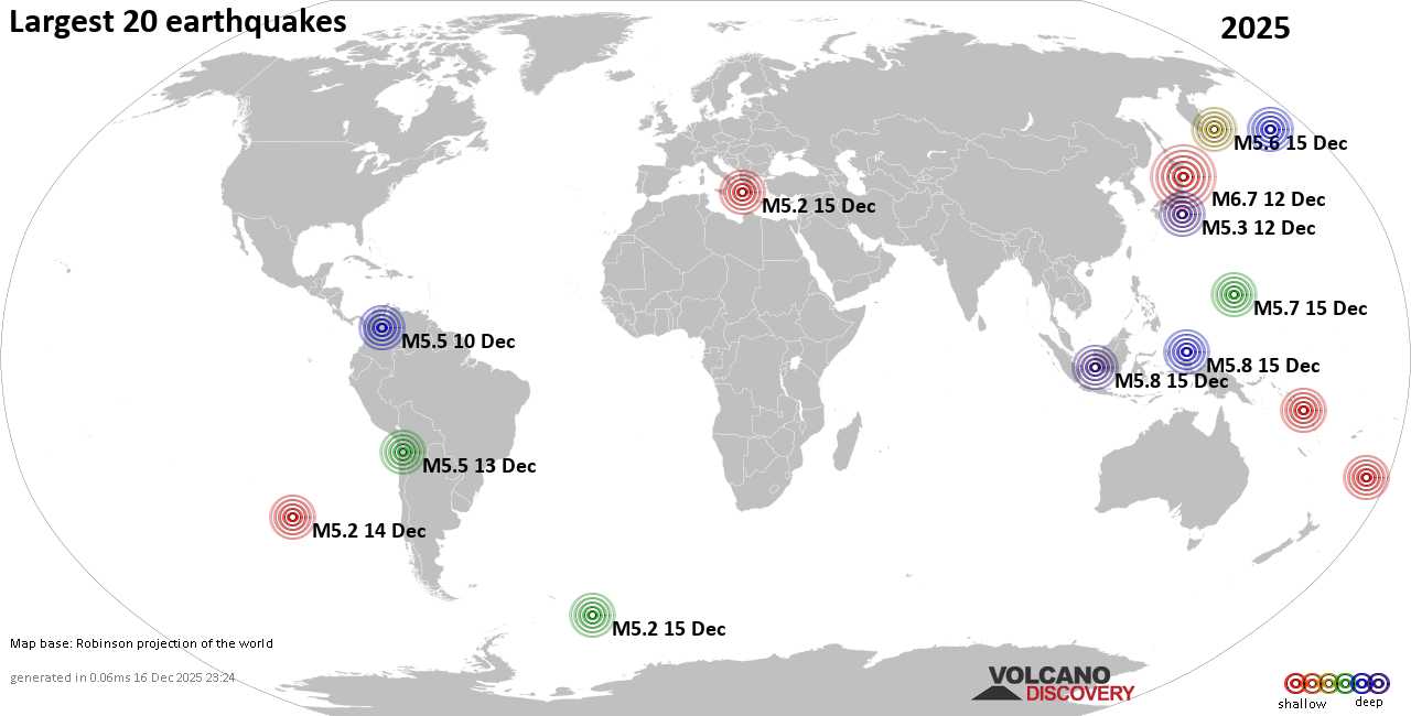 По данным Геологической службы Соединенных Штатов (USGS), ежегодно в мире происходит в среднем около 500000 обнаруживаемых землетрясений, или около 1400 землетрясений в день.