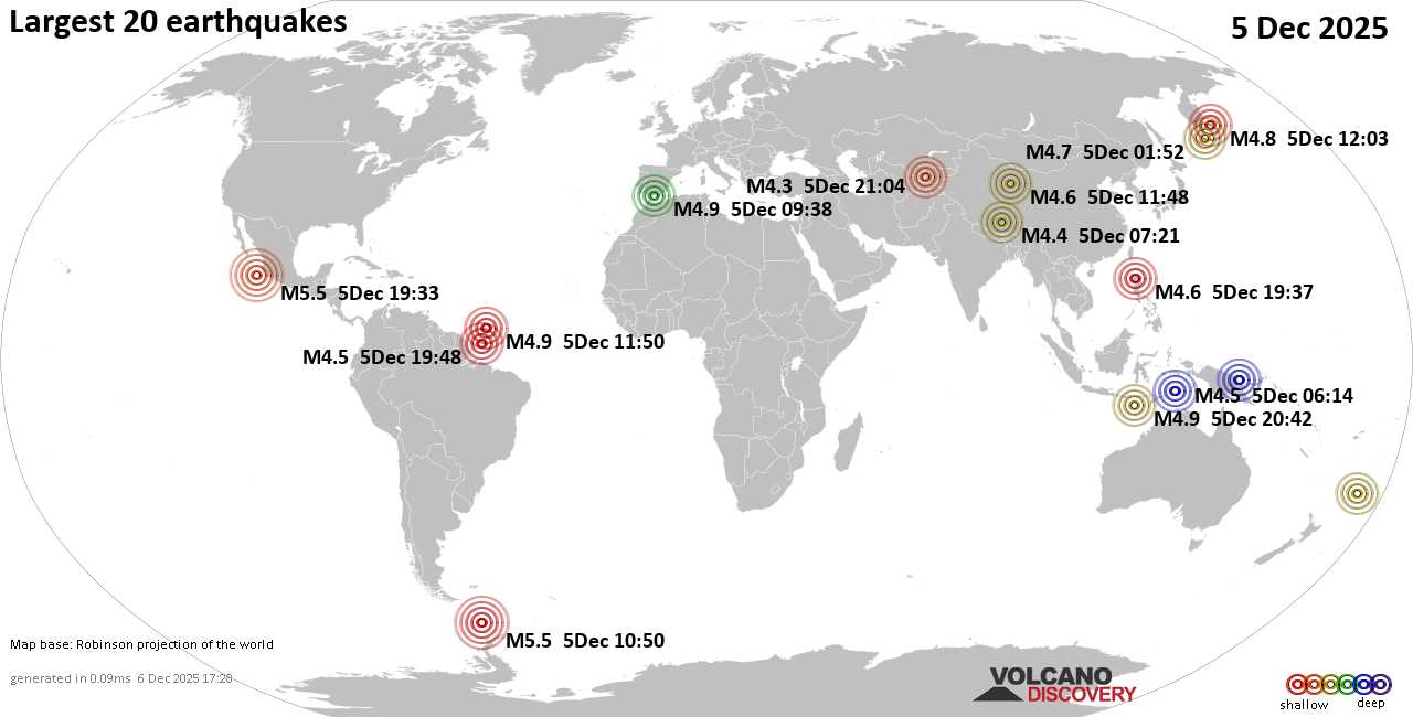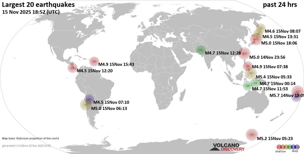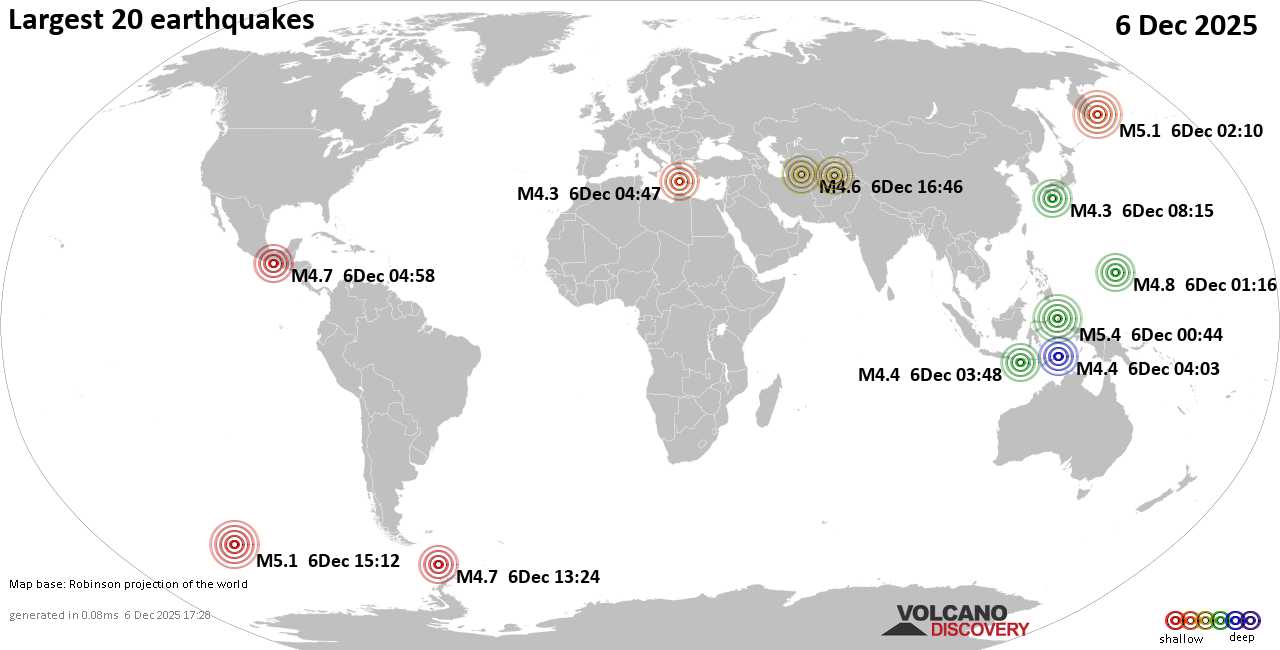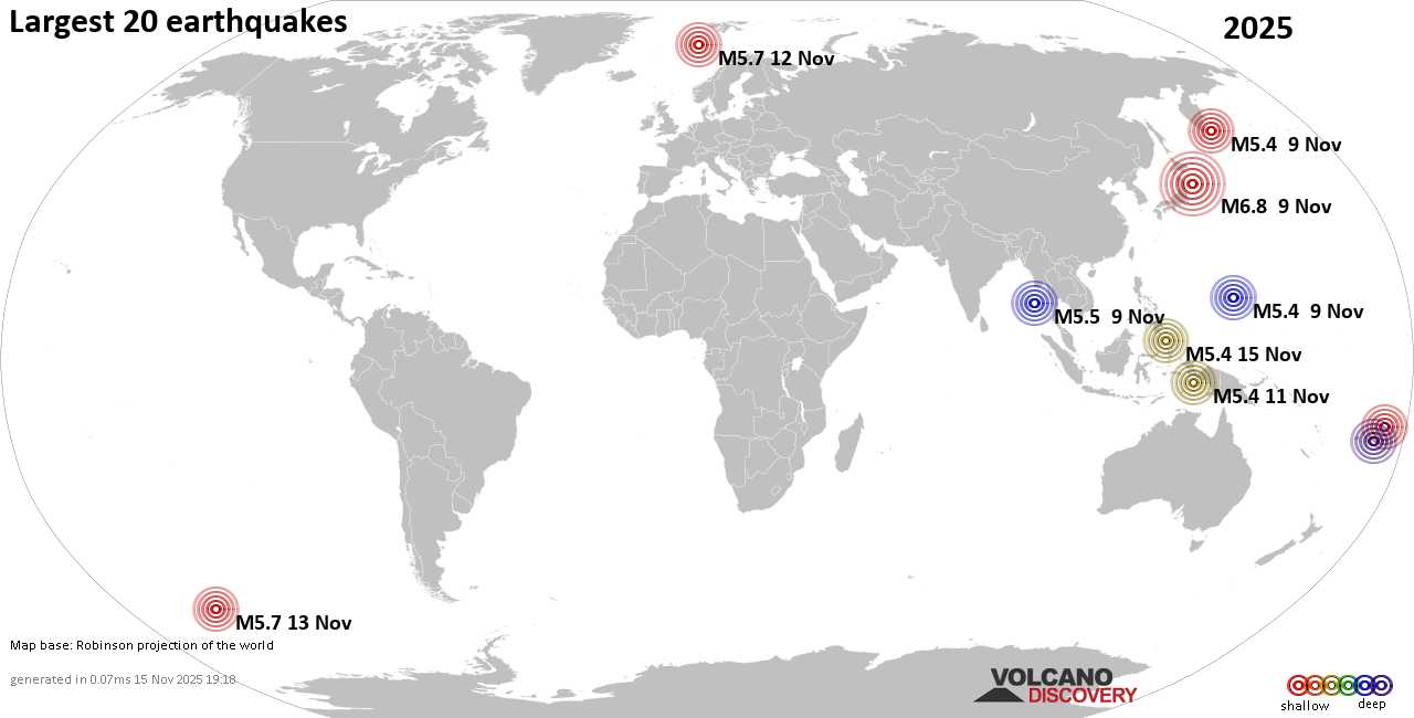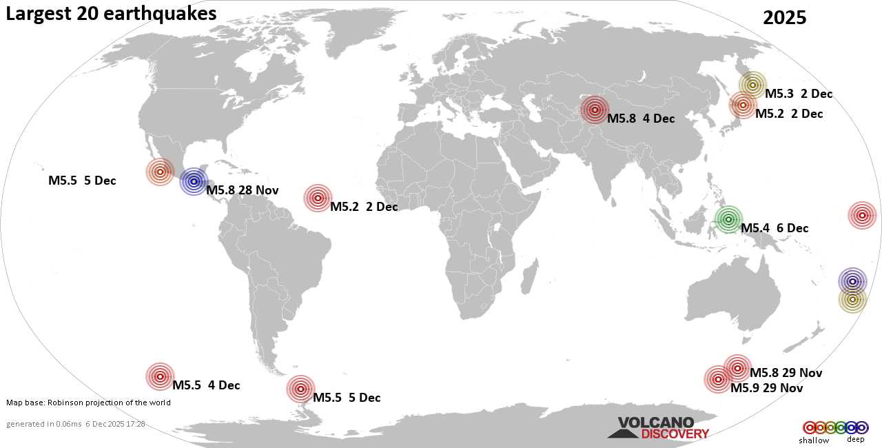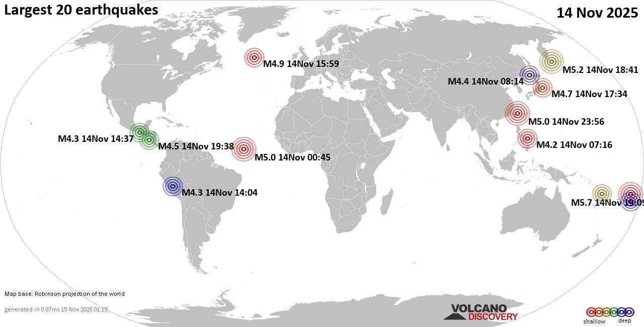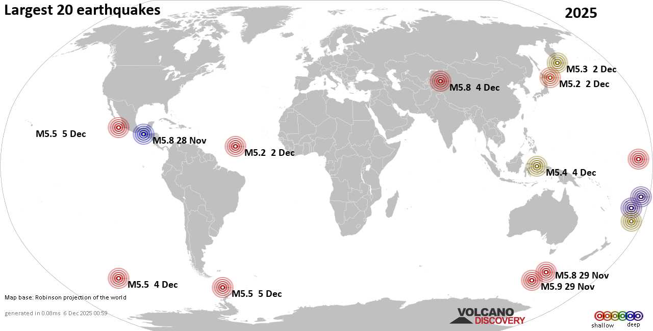 По данным Геологической службы Соединенных Штатов (USGS), ежегодно в мире происходит в среднем около 500000 обнаруживаемых землетрясений, или около 1400 землетрясений в день.