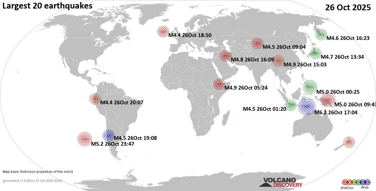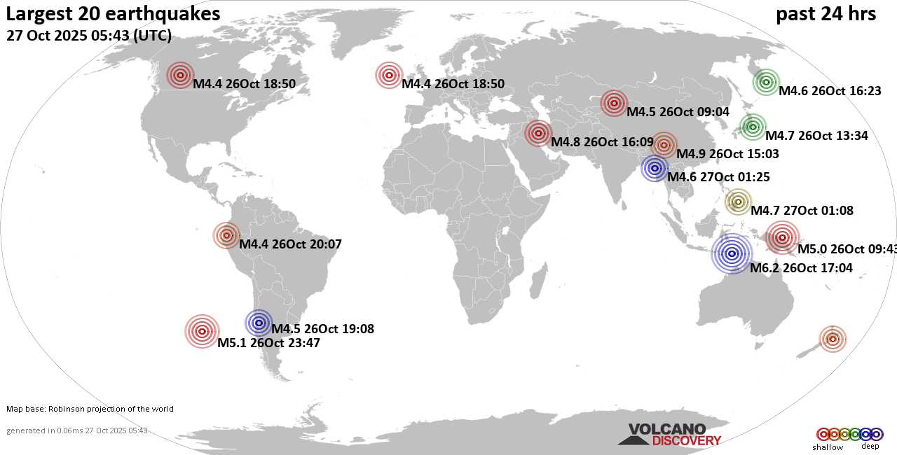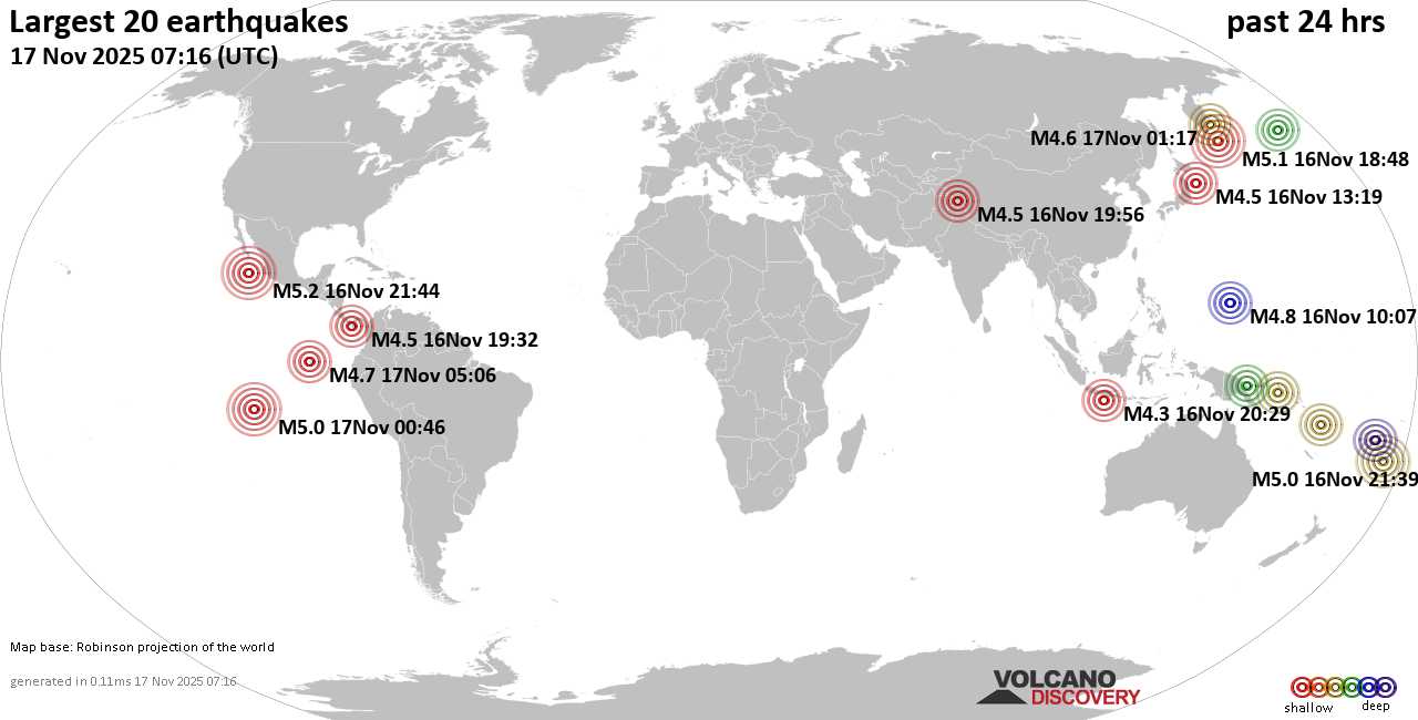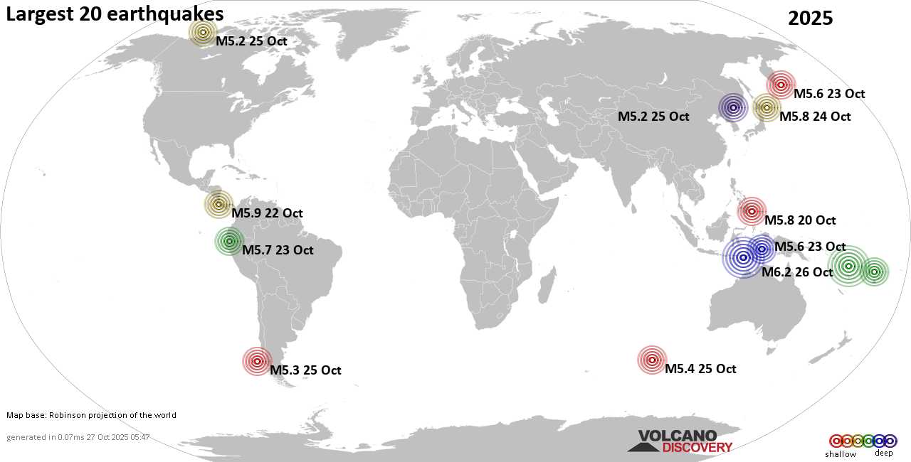 По данным Геологической службы Соединенных Штатов (USGS), ежегодно в мире происходит в среднем около 500000 обнаруживаемых землетрясений, или около 1400 землетрясений в день.