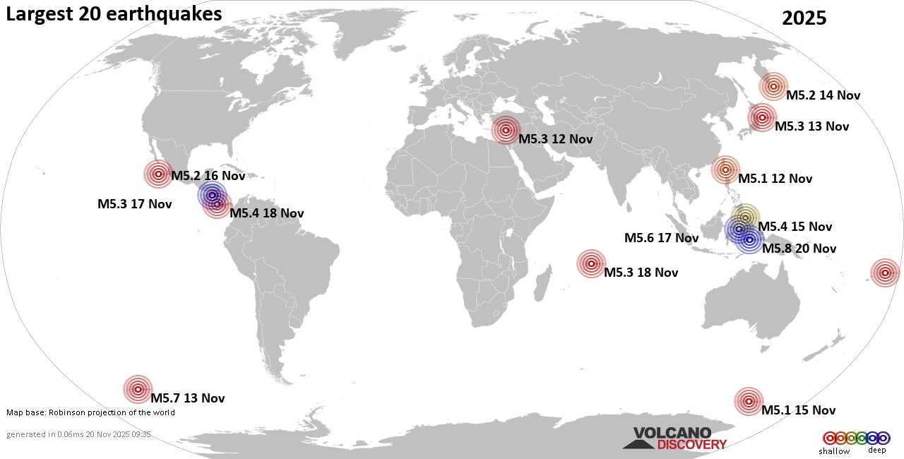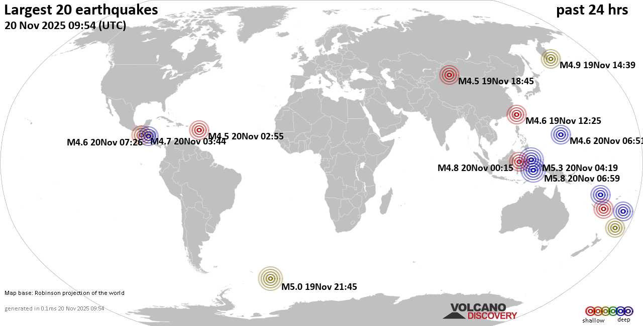 Землетрясения сегодня на карте: последние сильные землетрясения, 20 ноября 2025 года