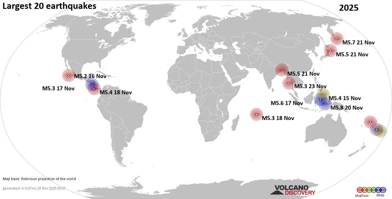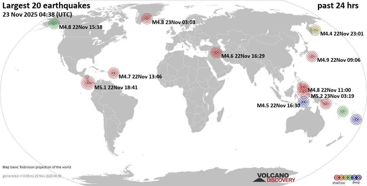 Землетрясения сегодня на карте: последние сильные землетрясения, 23 ноября 2025 года