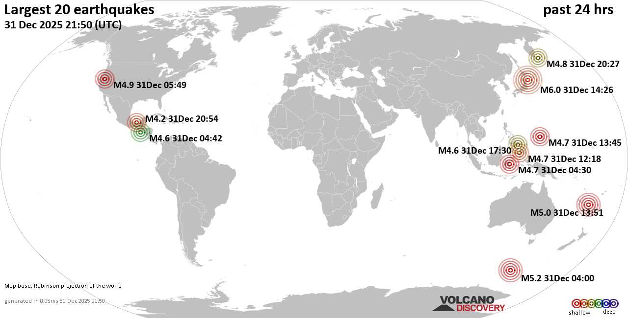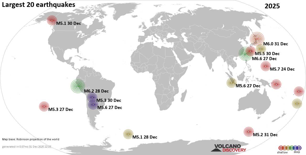 По данным Геологической службы Соединенных Штатов (USGS), ежегодно в мире происходит в среднем около 500000 обнаруживаемых землетрясений, или около 1400 землетрясений в день.