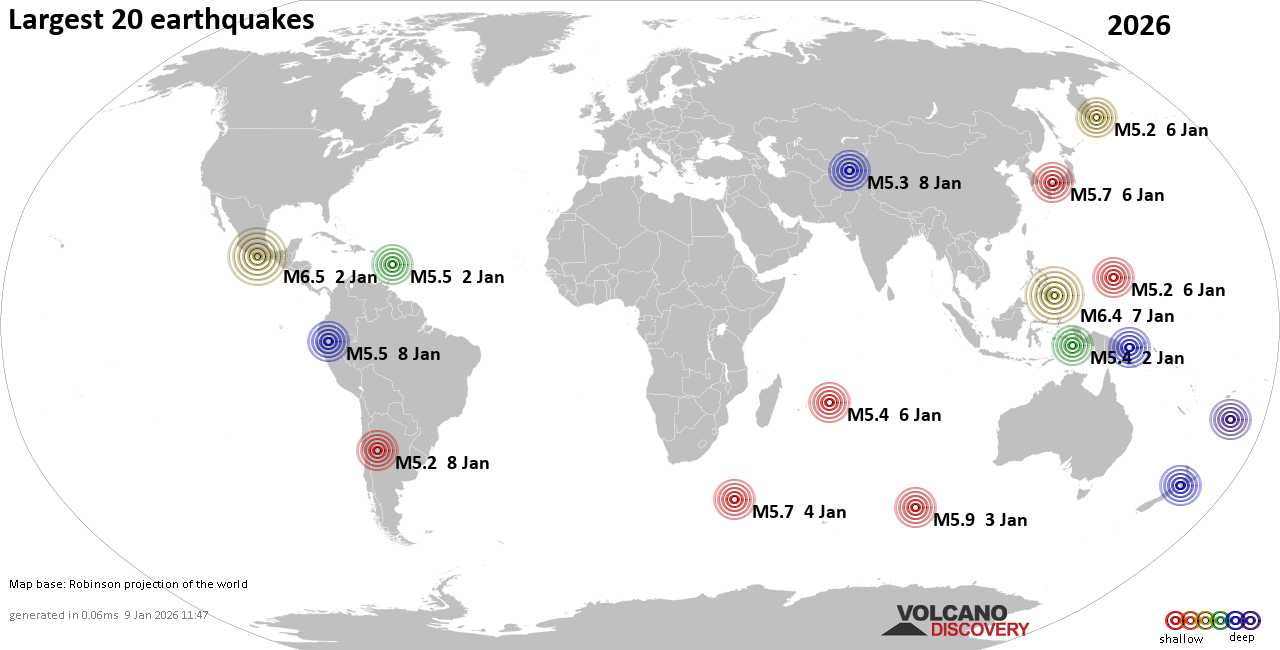 Землетрясения сегодня на карте: последние сильные землетрясения, 8 января 2026 года