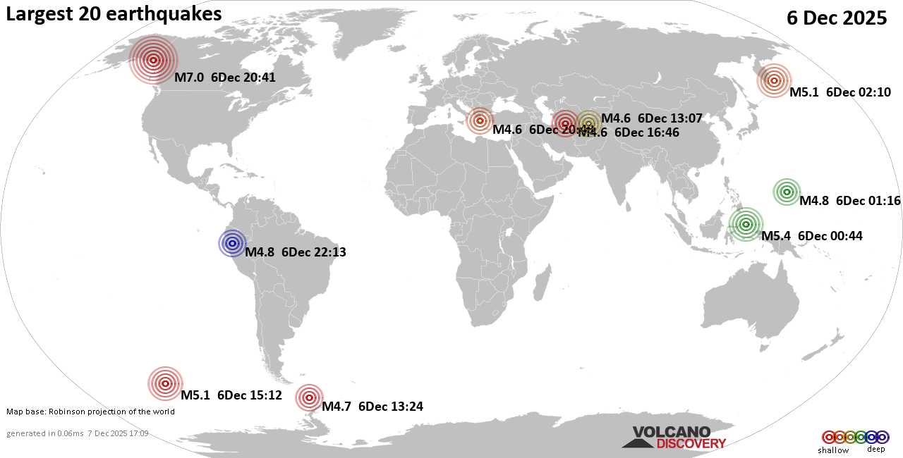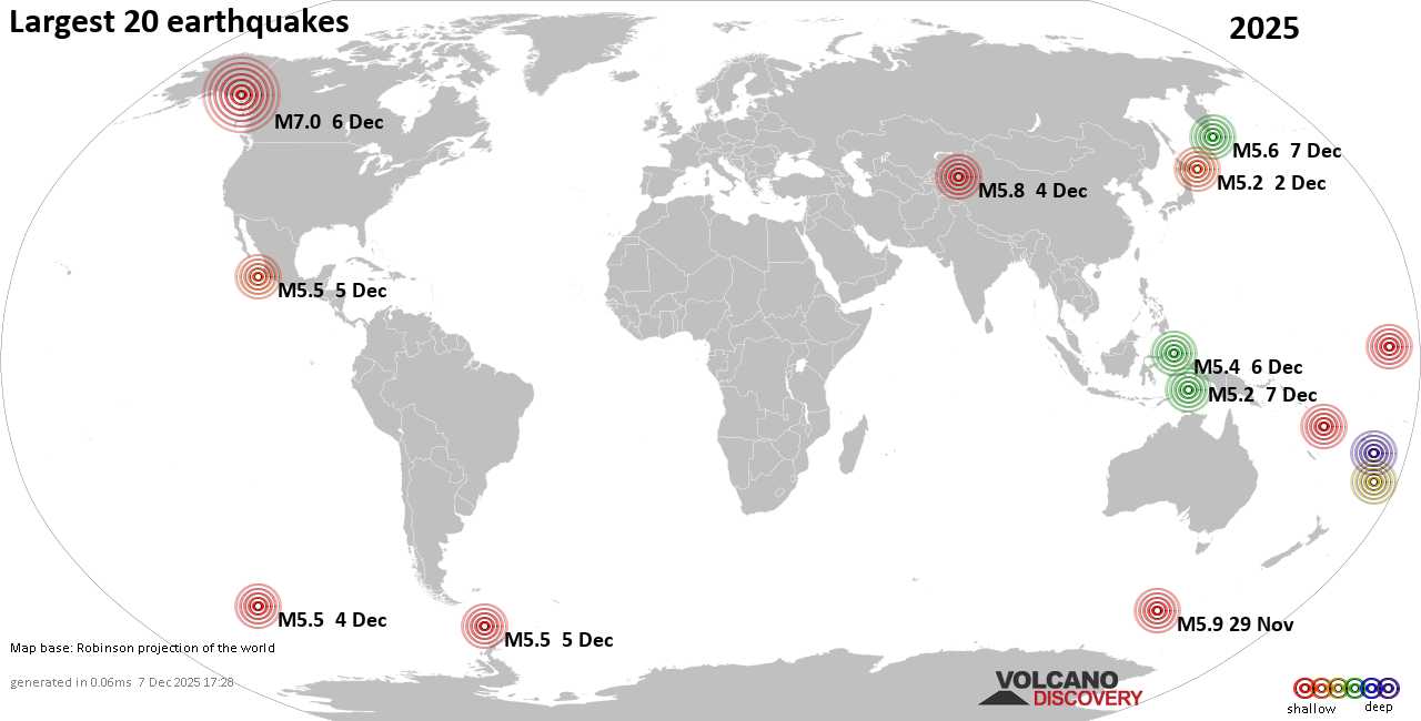 Землетрясения сегодня на карте: последние сильные землетрясения, 7 декабря 2025 года