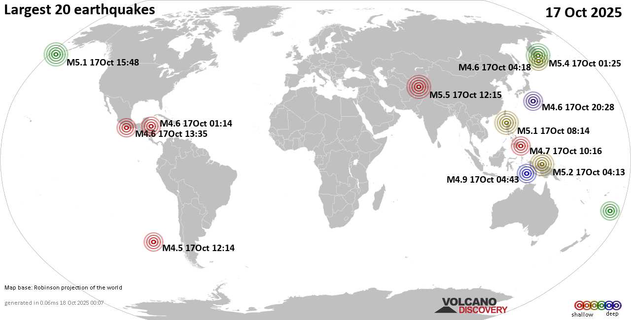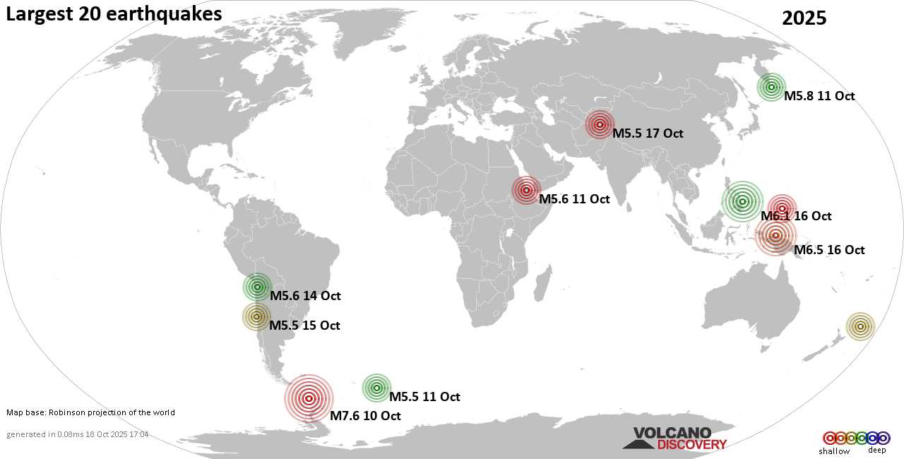 По данным Геологической службы Соединенных Штатов (USGS), ежегодно в мире происходит в среднем около 500000 обнаруживаемых землетрясений, или около 1400 землетрясений в день.