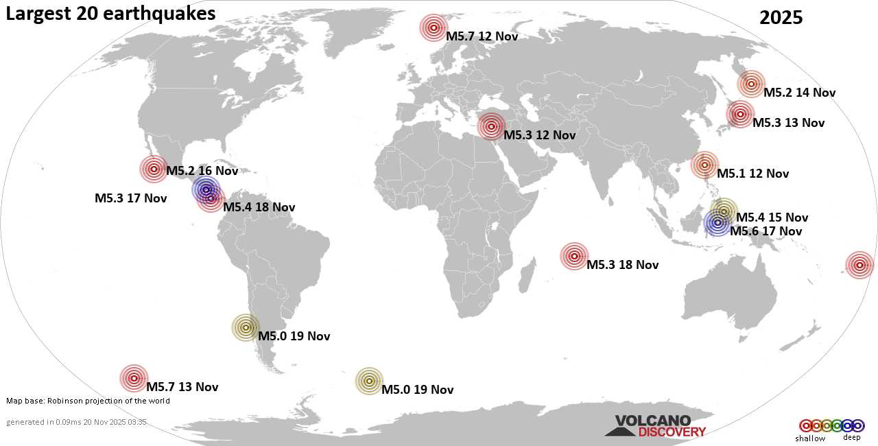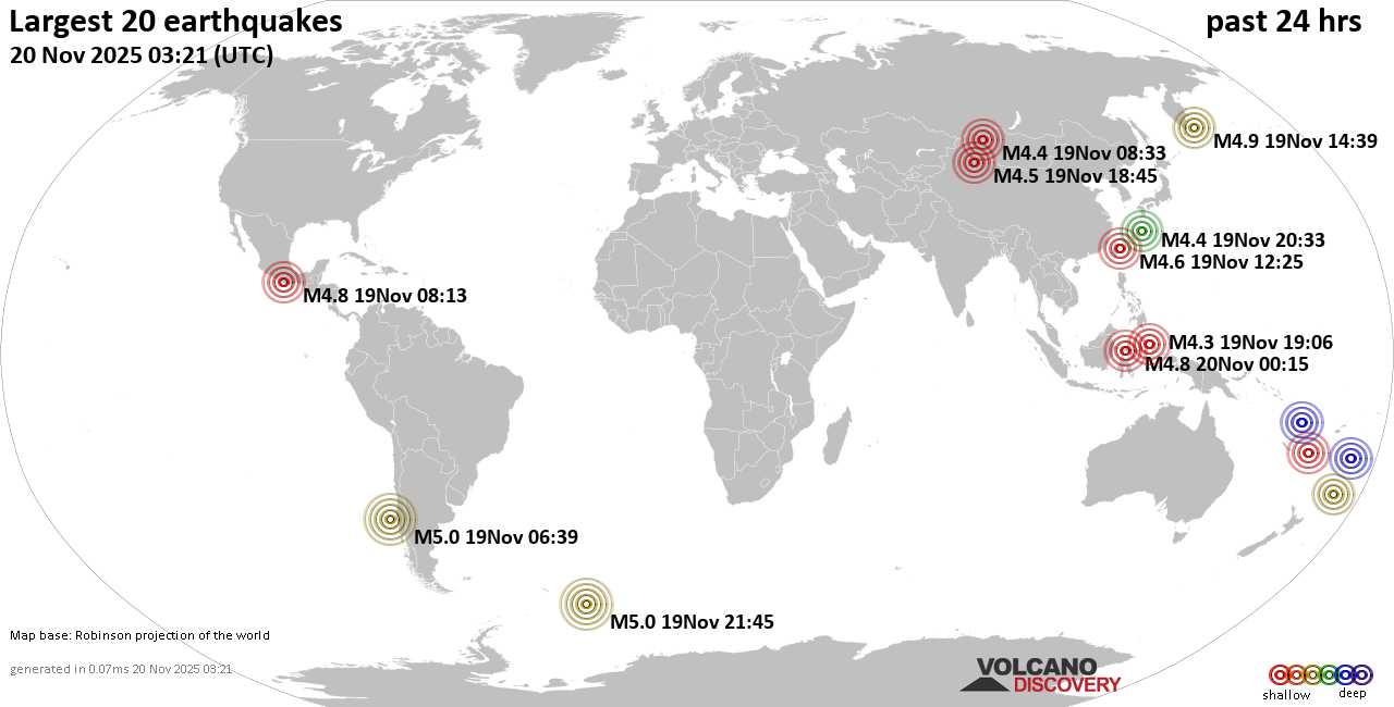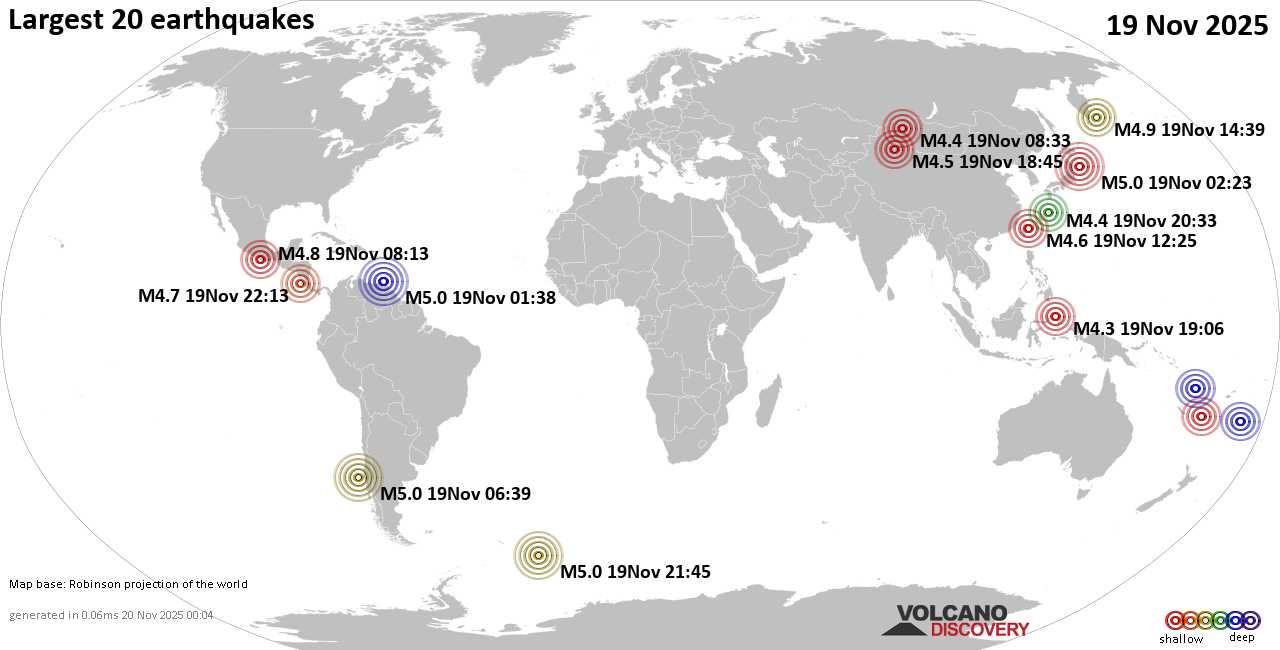 Землетрясения сегодня на карте: последние сильные землетрясения, 20 ноября 2025 года