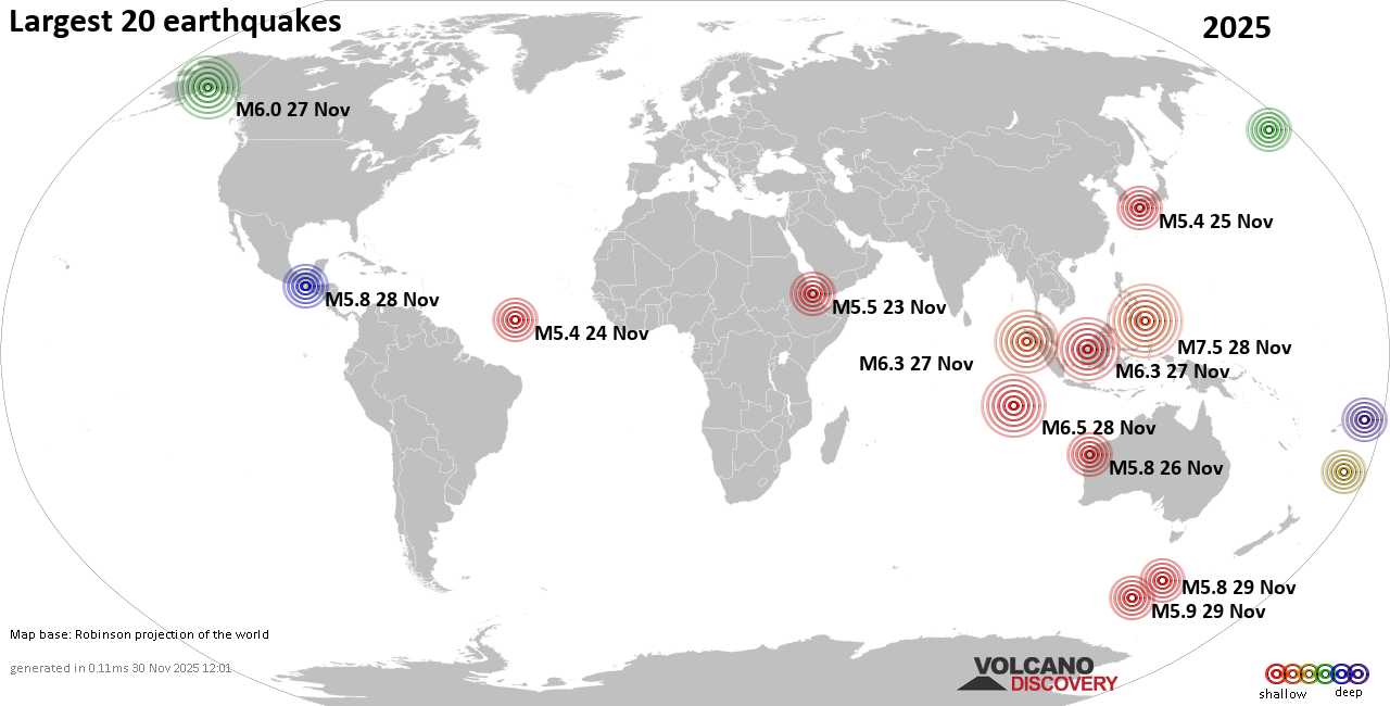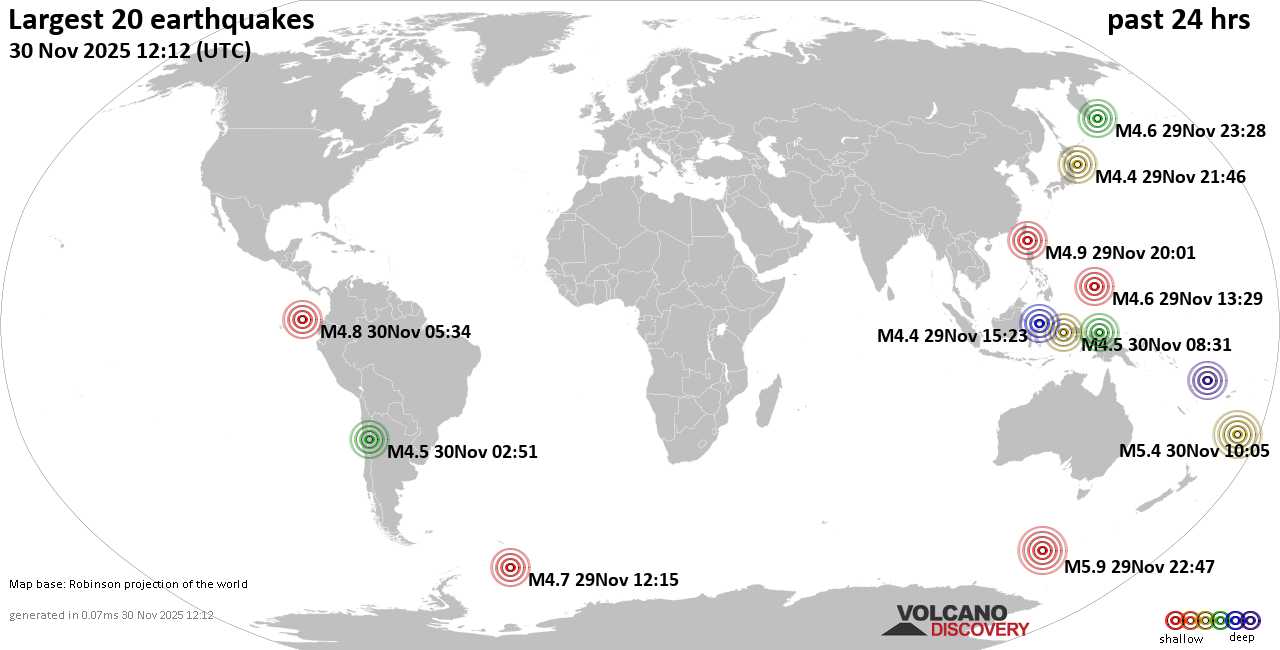 Землетрясения сегодня на карте: последние сильные землетрясения, 30 ноября 2025 года