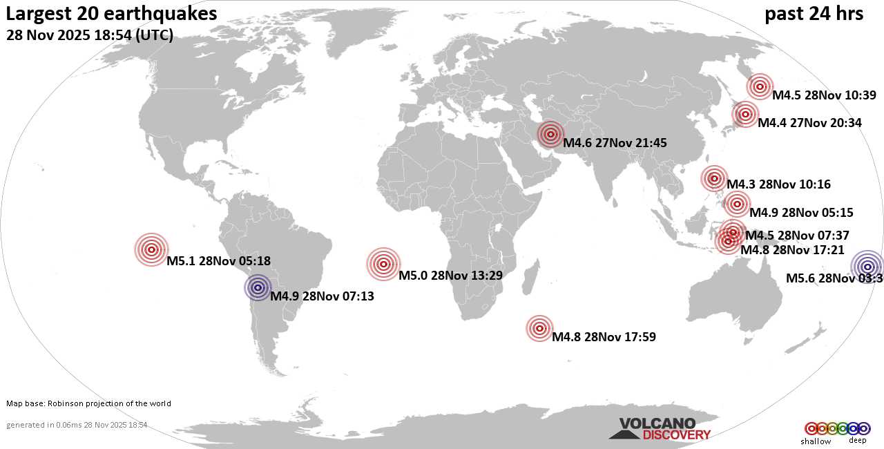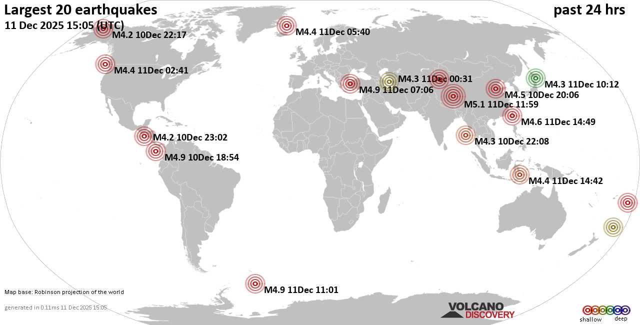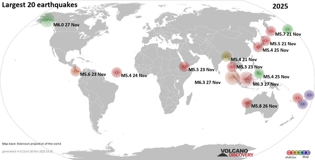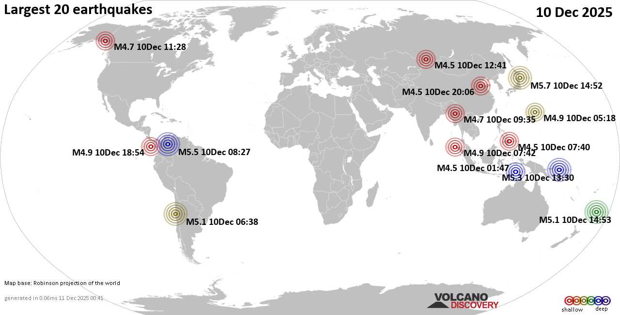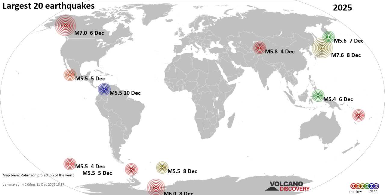 По данным Геологической службы Соединенных Штатов (USGS), ежегодно в мире происходит в среднем около 500000 обнаруживаемых землетрясений, или около 1400 землетрясений в день.