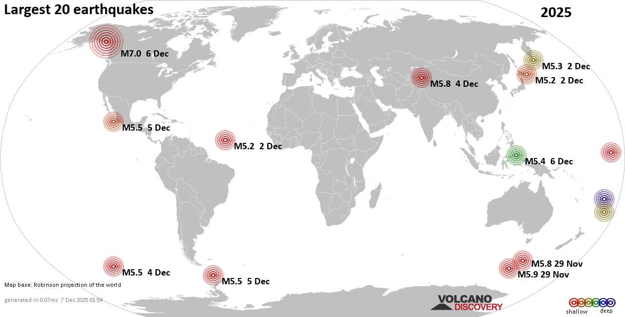 Землетрясения сегодня на карте: последние сильные землетрясения, 7 декабря 2025 года