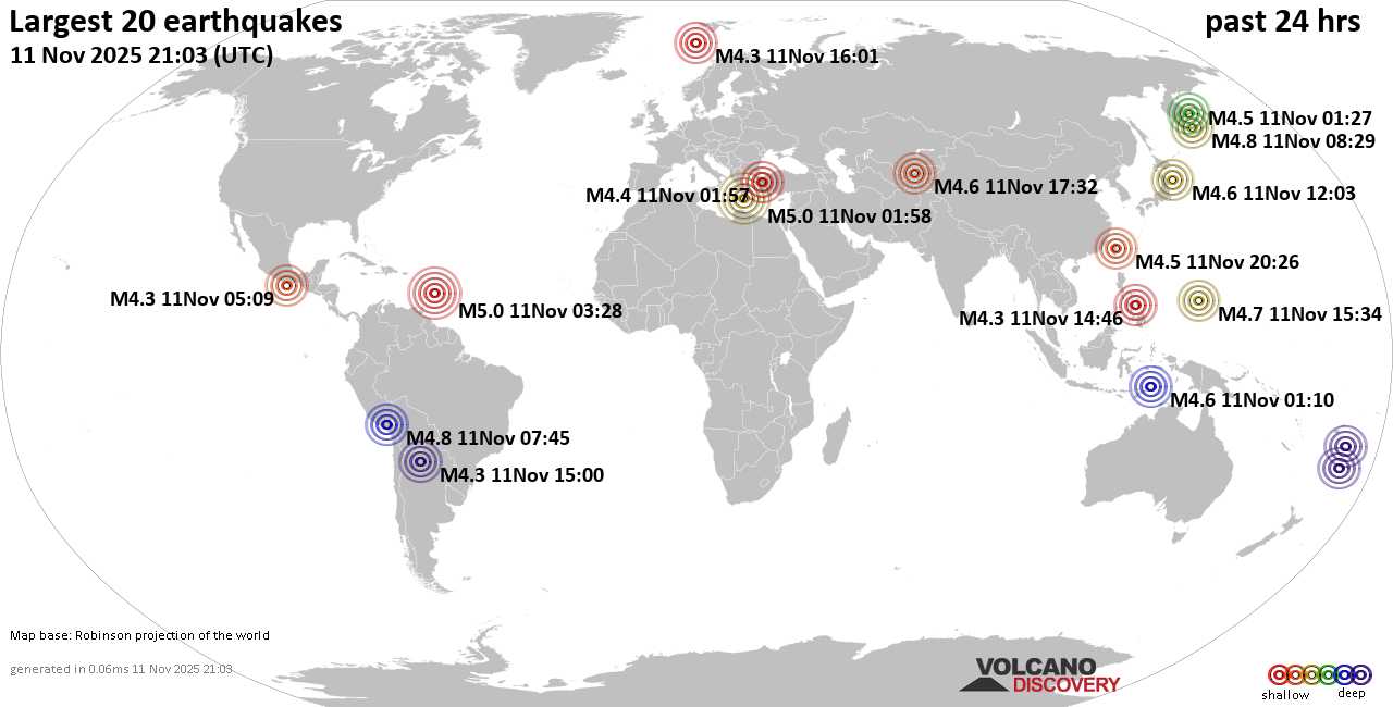 Землетрясения сегодня на карте: последние сильные землетрясения, 11 ноября 2025 года