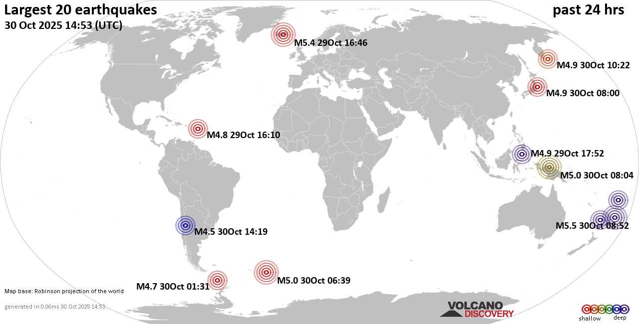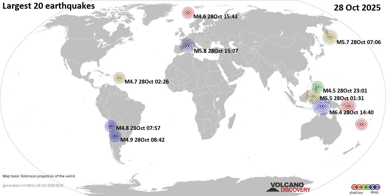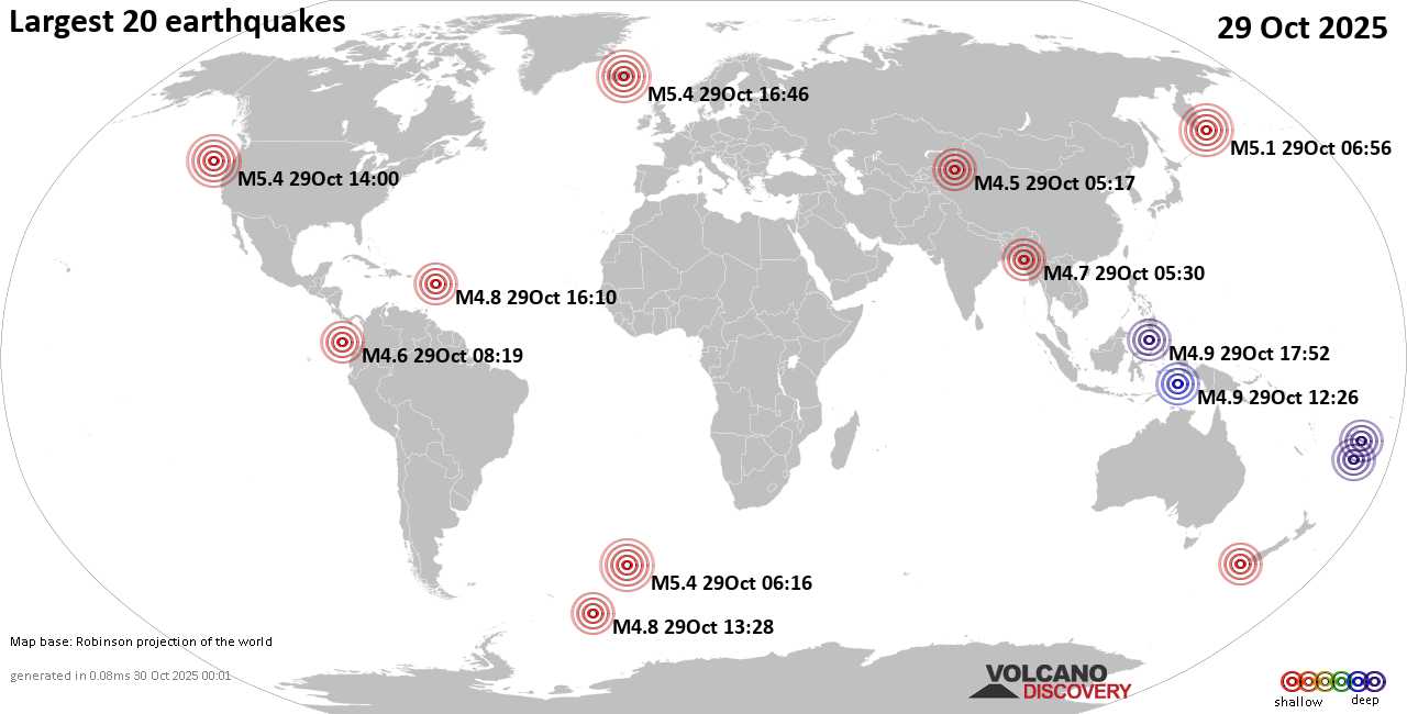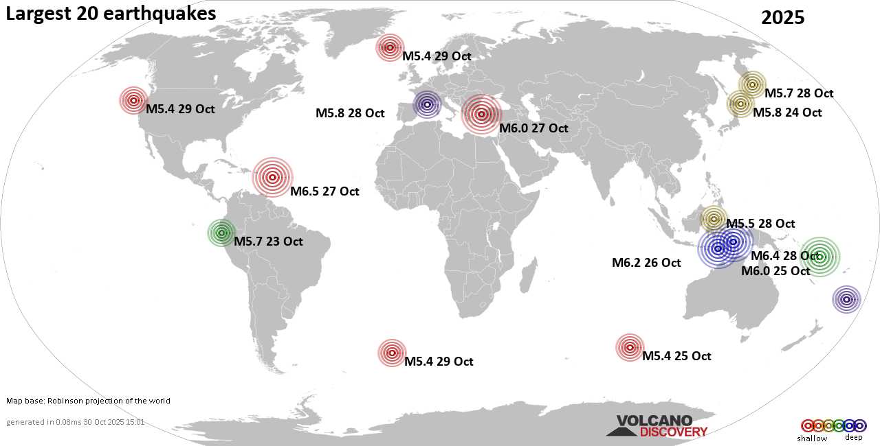 По данным Геологической службы Соединенных Штатов (USGS), ежегодно в мире происходит в среднем около 500000 обнаруживаемых землетрясений, или около 1400 землетрясений в день.