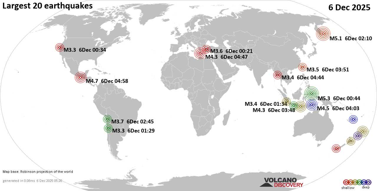 Землетрясения сегодня на карте: последние сильные землетрясения, 6 декабря 2025 года