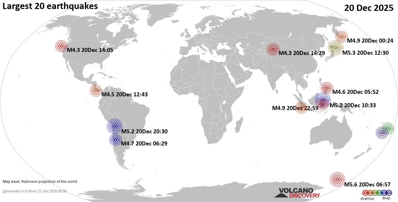 По данным Геологической службы Соединенных Штатов (USGS), ежегодно в мире происходит в среднем около 500000 обнаруживаемых землетрясений, или около 1400 землетрясений в день.
