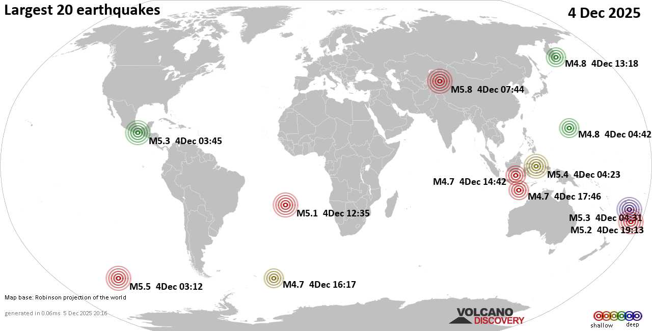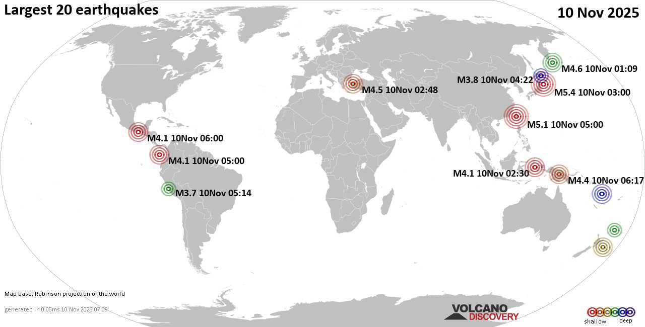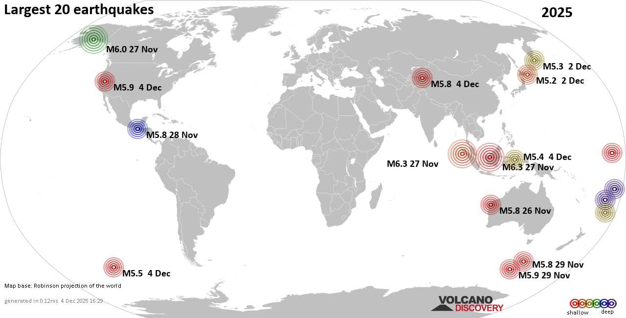 По данным Геологической службы Соединенных Штатов (USGS), ежегодно в мире происходит в среднем около 500000 обнаруживаемых землетрясений, или около 1400 землетрясений в день.