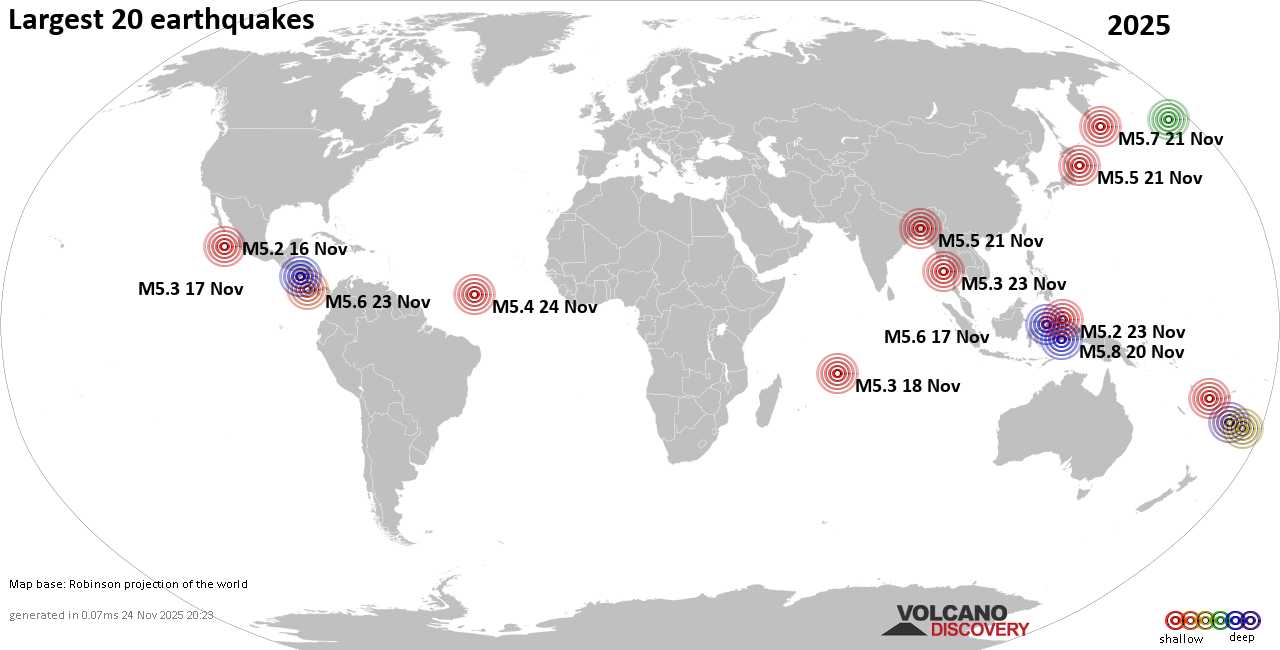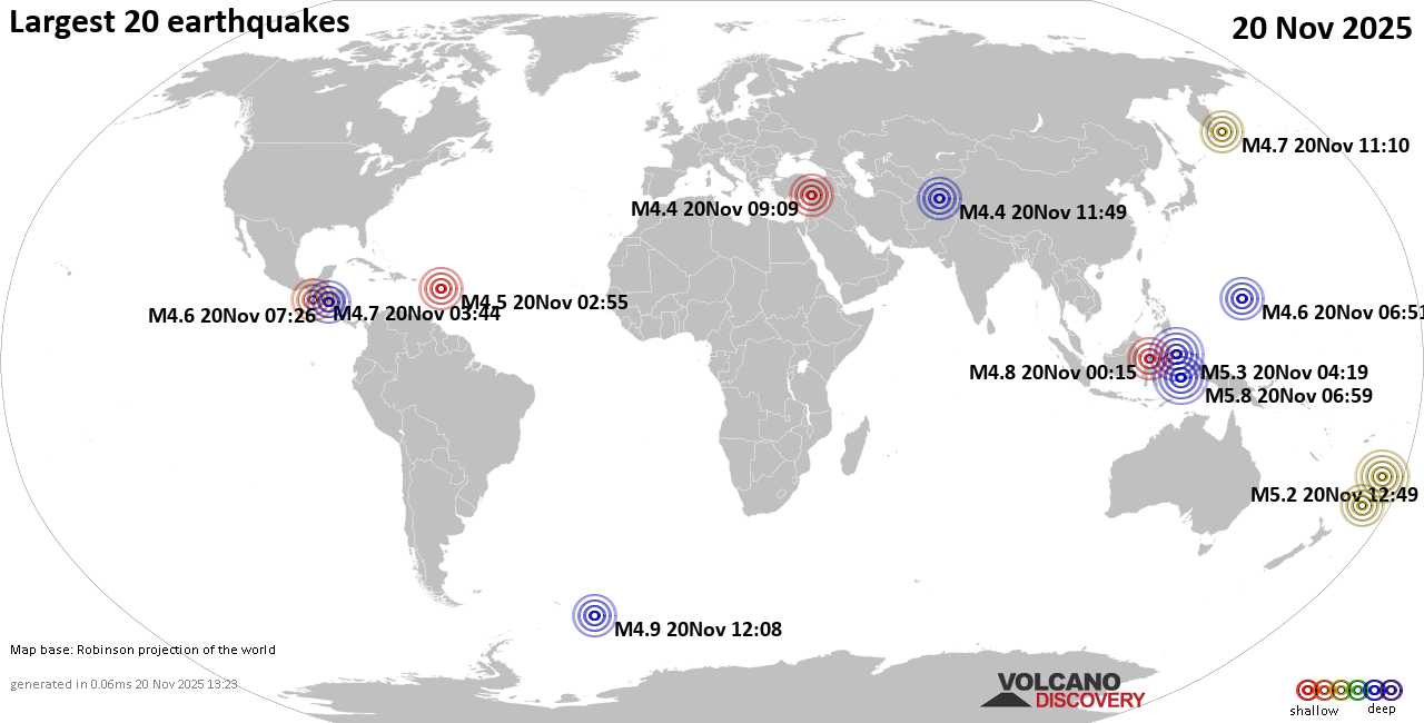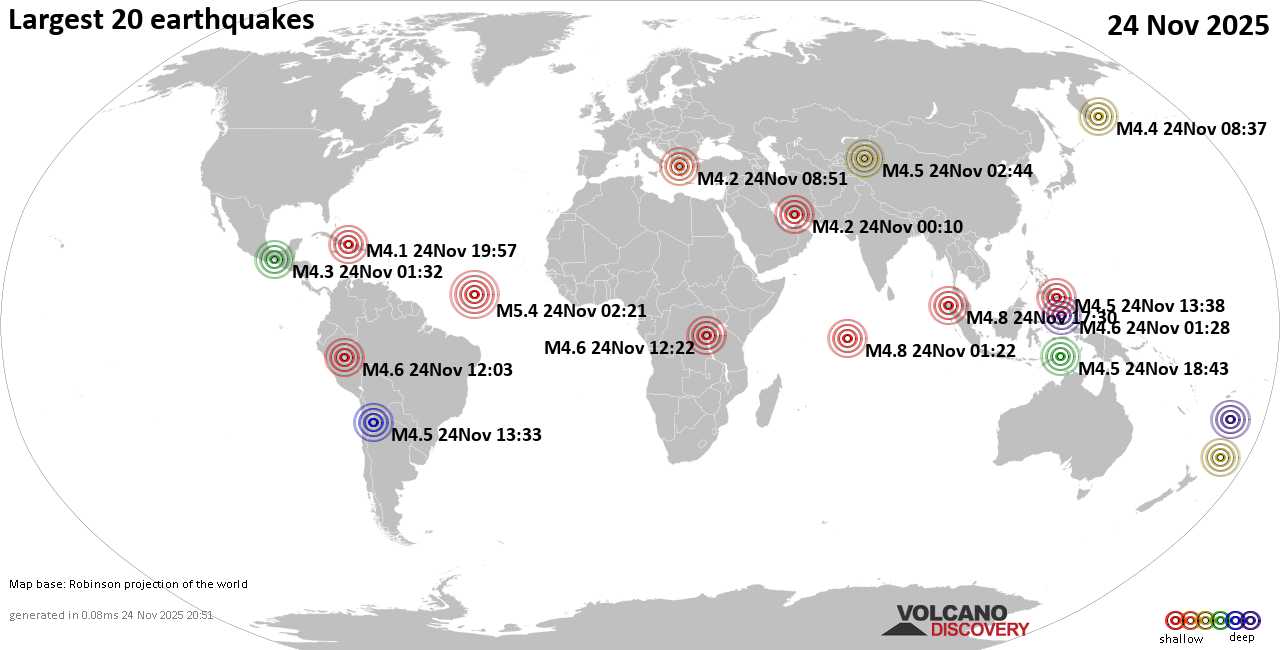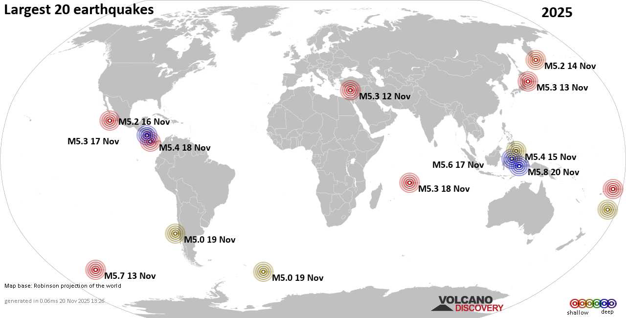 По данным Геологической службы Соединенных Штатов (USGS), ежегодно в мире происходит в среднем около 500000 обнаруживаемых землетрясений, или около 1400 землетрясений в день.