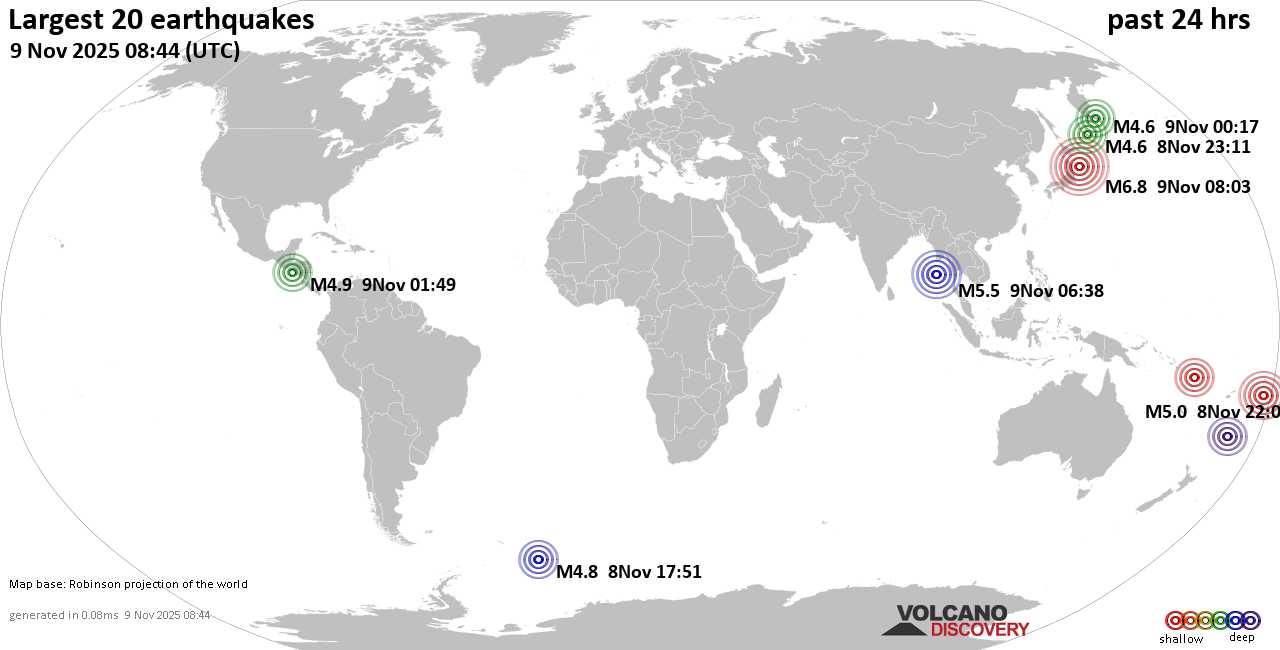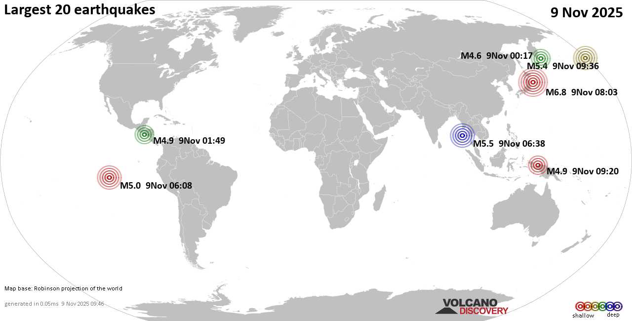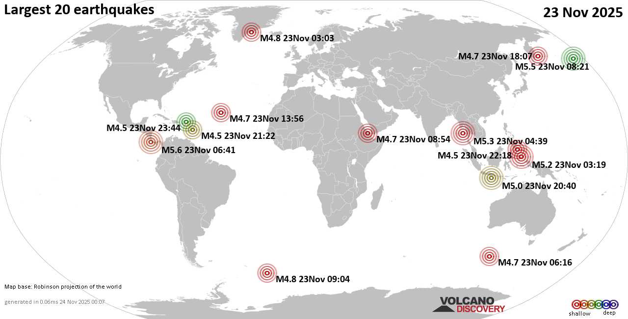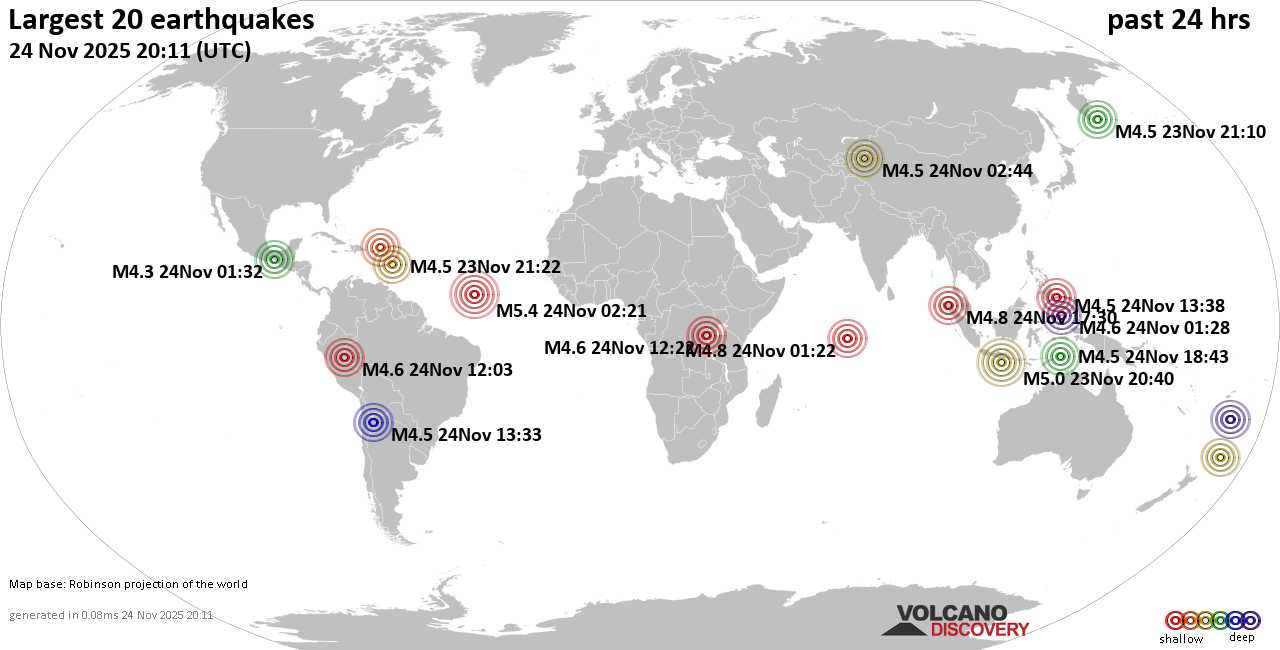 По данным Геологической службы Соединенных Штатов (USGS), ежегодно в мире происходит в среднем около 500000 обнаруживаемых землетрясений, или около 1400 землетрясений в день.