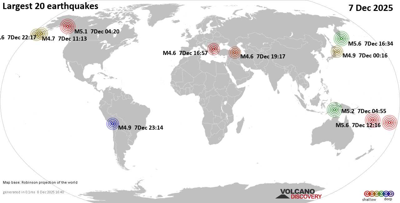 Землетрясения вчера на карте: сильные землетрясения, 7 декабря 2025 года