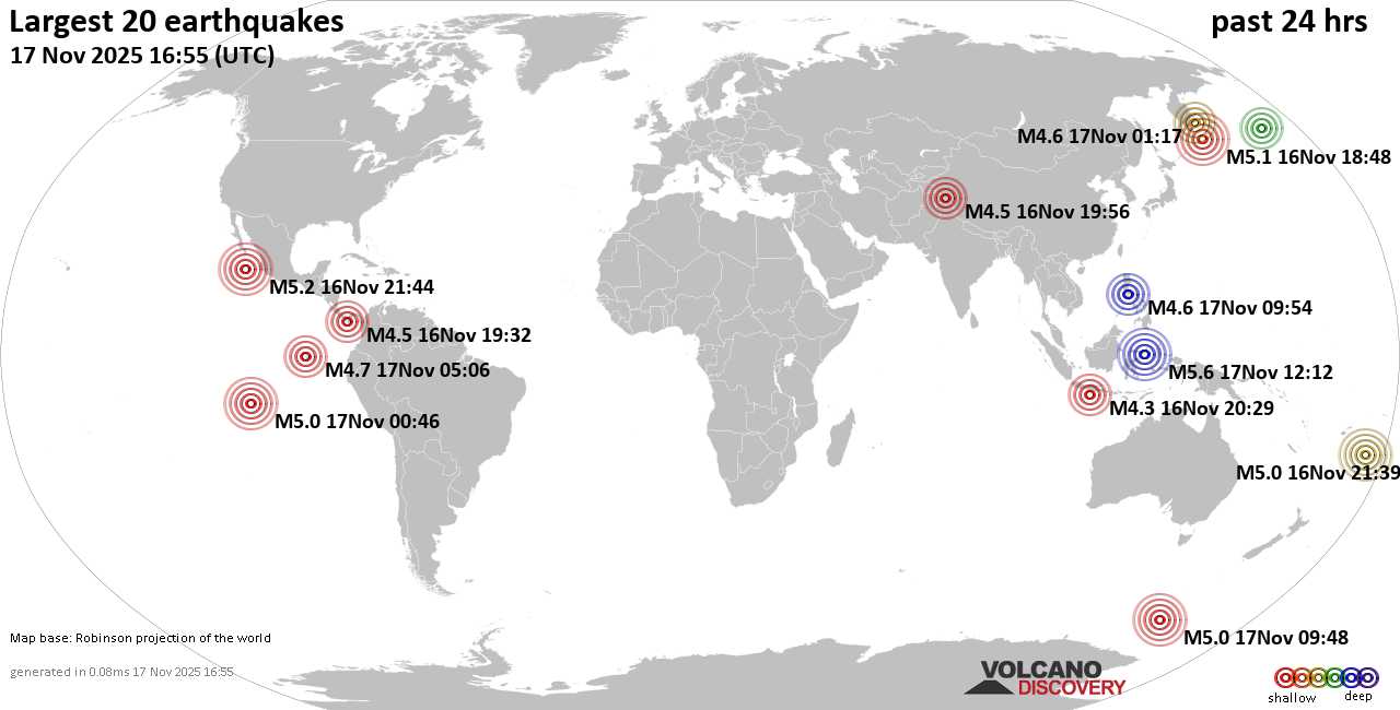Землетрясения сегодня на карте: последние сильные землетрясения, 17 ноября 2025 года