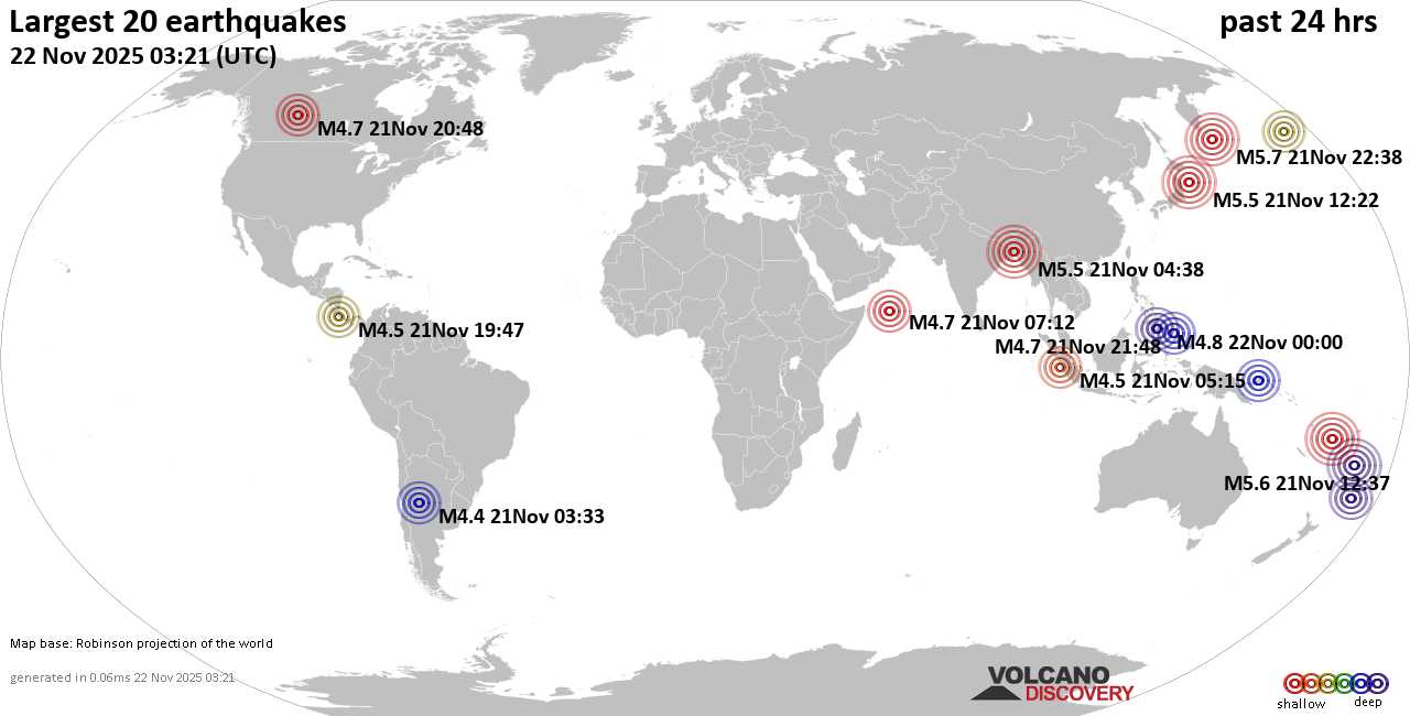 По данным Геологической службы Соединенных Штатов (USGS), ежегодно в мире происходит в среднем около 500000 обнаруживаемых землетрясений, или около 1400 землетрясений в день.