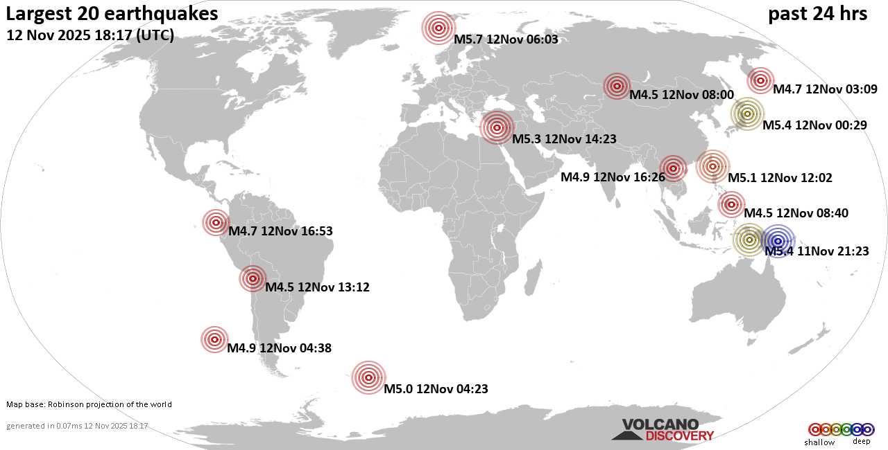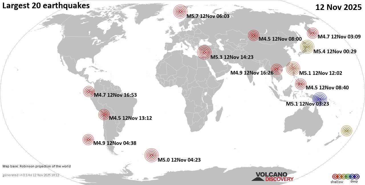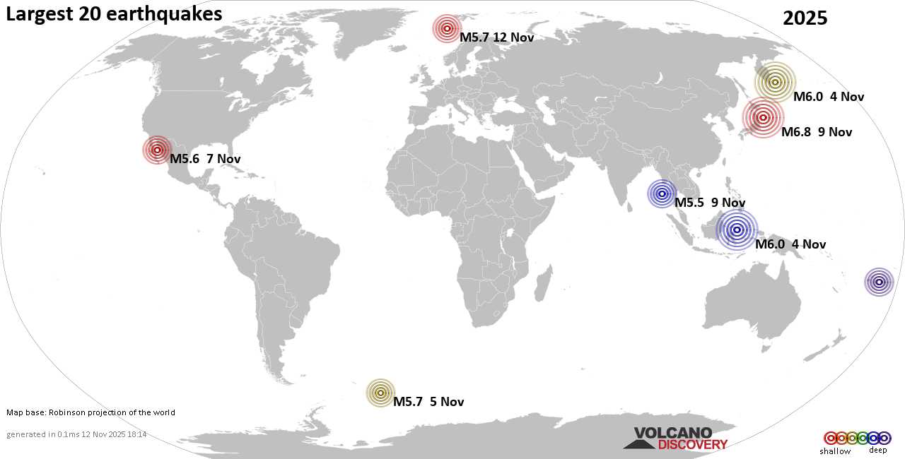 По данным Геологической службы Соединенных Штатов (USGS), ежегодно в мире происходит в среднем около 500000 обнаруживаемых землетрясений, или около 1400 землетрясений в день.
