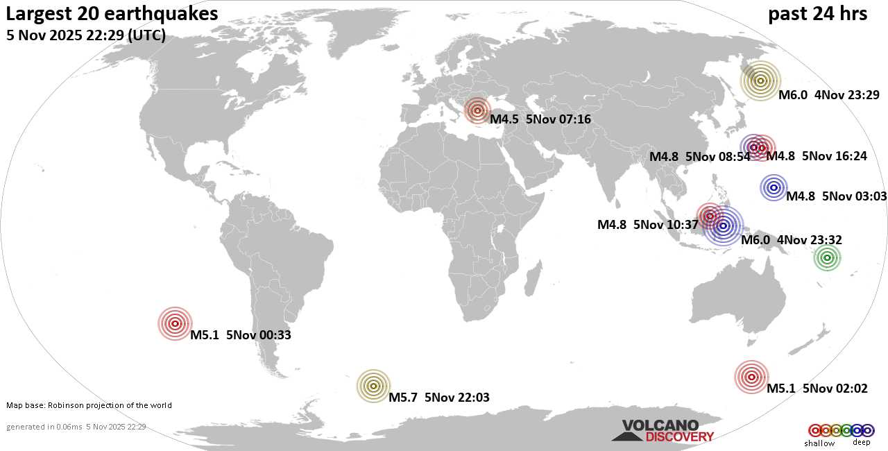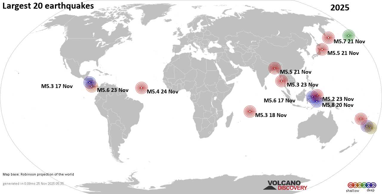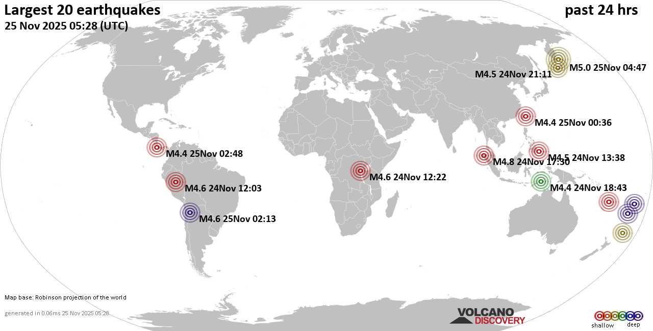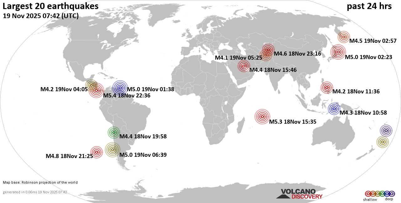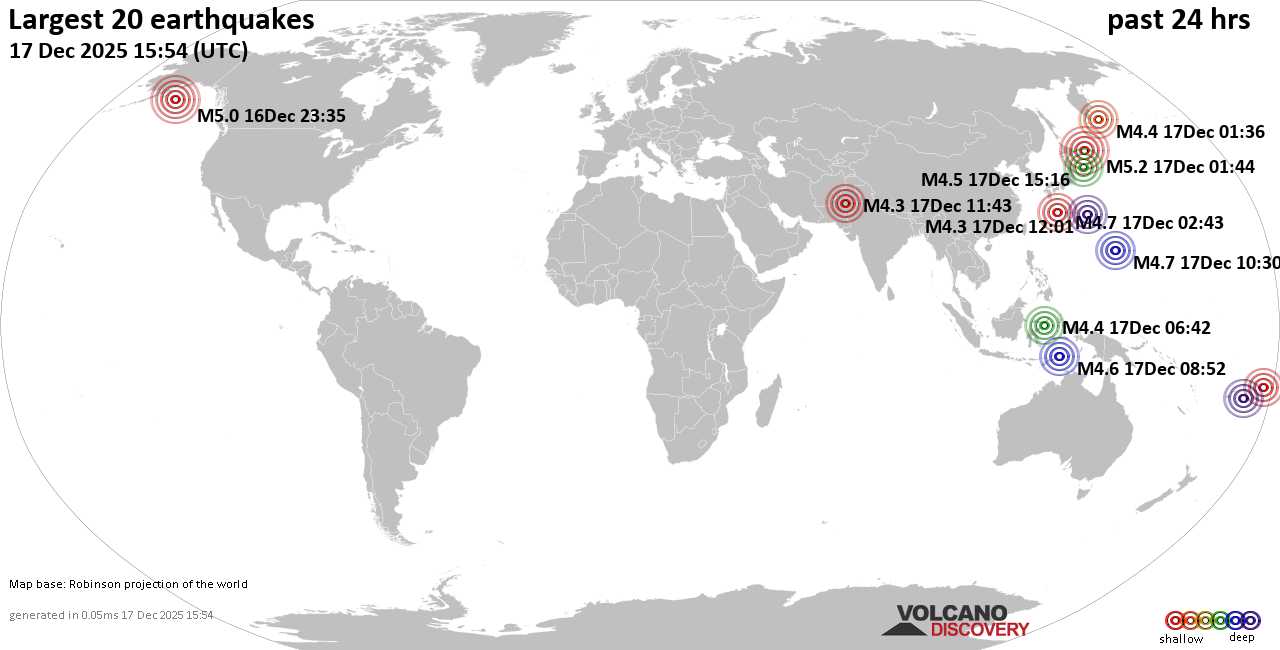 По данным Геологической службы Соединенных Штатов (USGS), ежегодно в мире происходит в среднем около 500000 обнаруживаемых землетрясений, или около 1400 землетрясений в день.