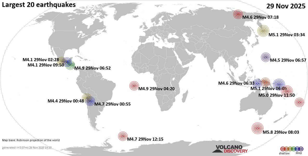 Землетрясения сегодня на карте: последние сильные землетрясения, 29 ноября 2025 года