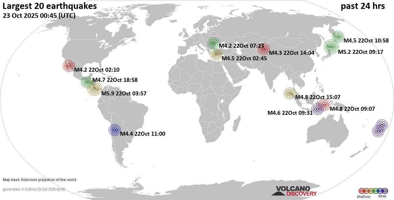 По данным Геологической службы Соединенных Штатов (USGS), ежегодно в мире происходит в среднем около 500000 обнаруживаемых землетрясений, или около 1400 землетрясений в день.