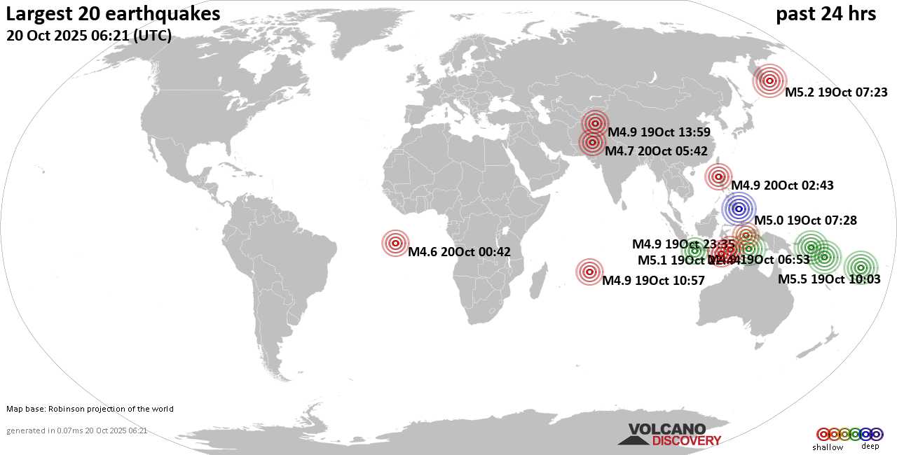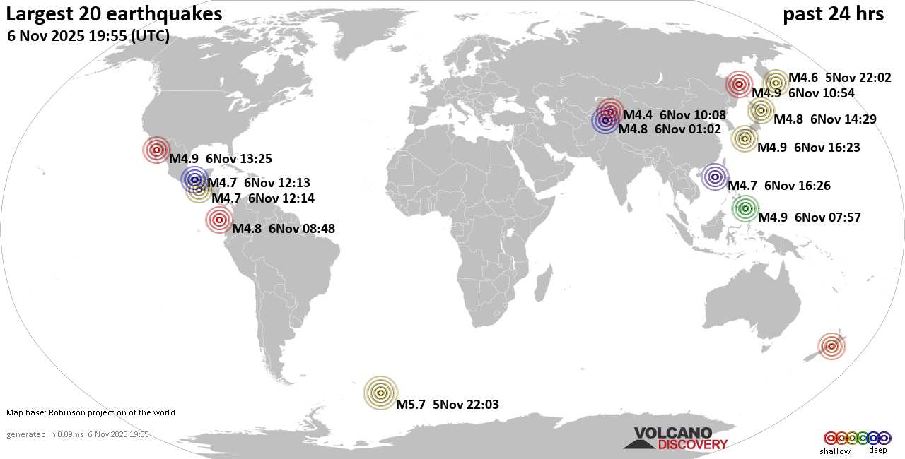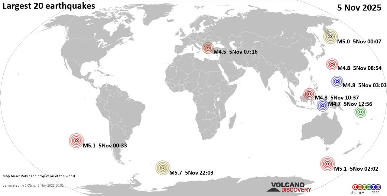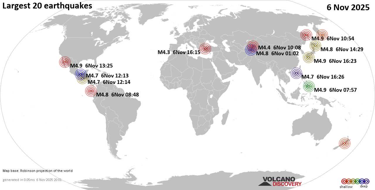 По данным Геологической службы Соединенных Штатов (USGS), ежегодно в мире происходит в среднем около 500000 обнаруживаемых землетрясений, или около 1400 землетрясений в день.
