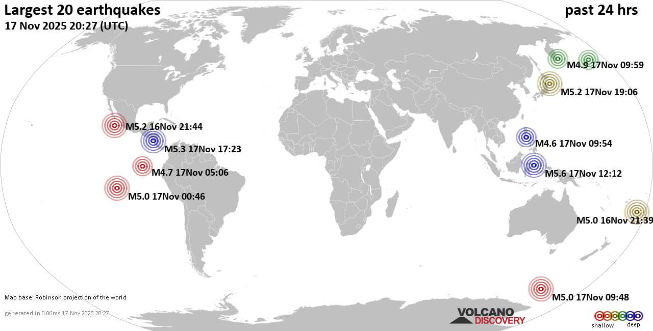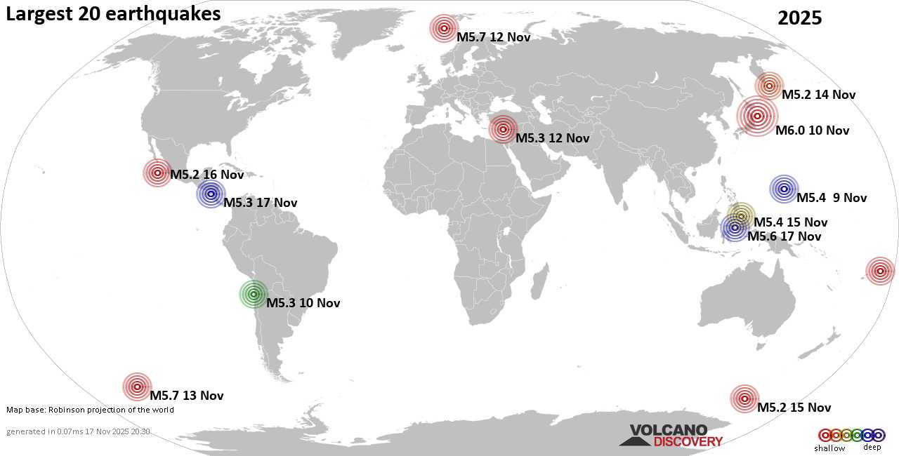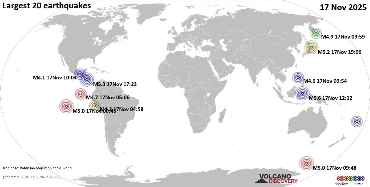Землетрясения сегодня на карте: последние сильные землетрясения, 17 ноября 2025 года
