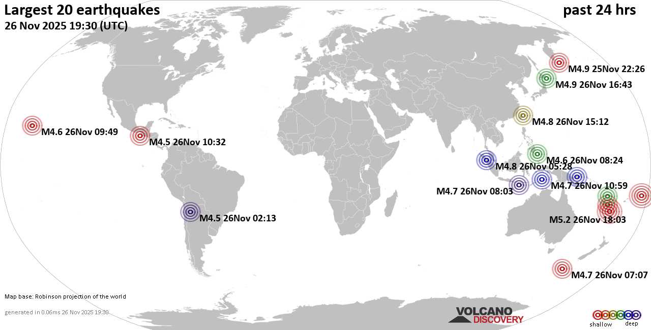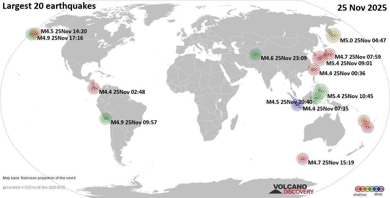 По данным Геологической службы Соединенных Штатов (USGS), ежегодно в мире происходит в среднем около 500000 обнаруживаемых землетрясений, или около 1400 землетрясений в день.