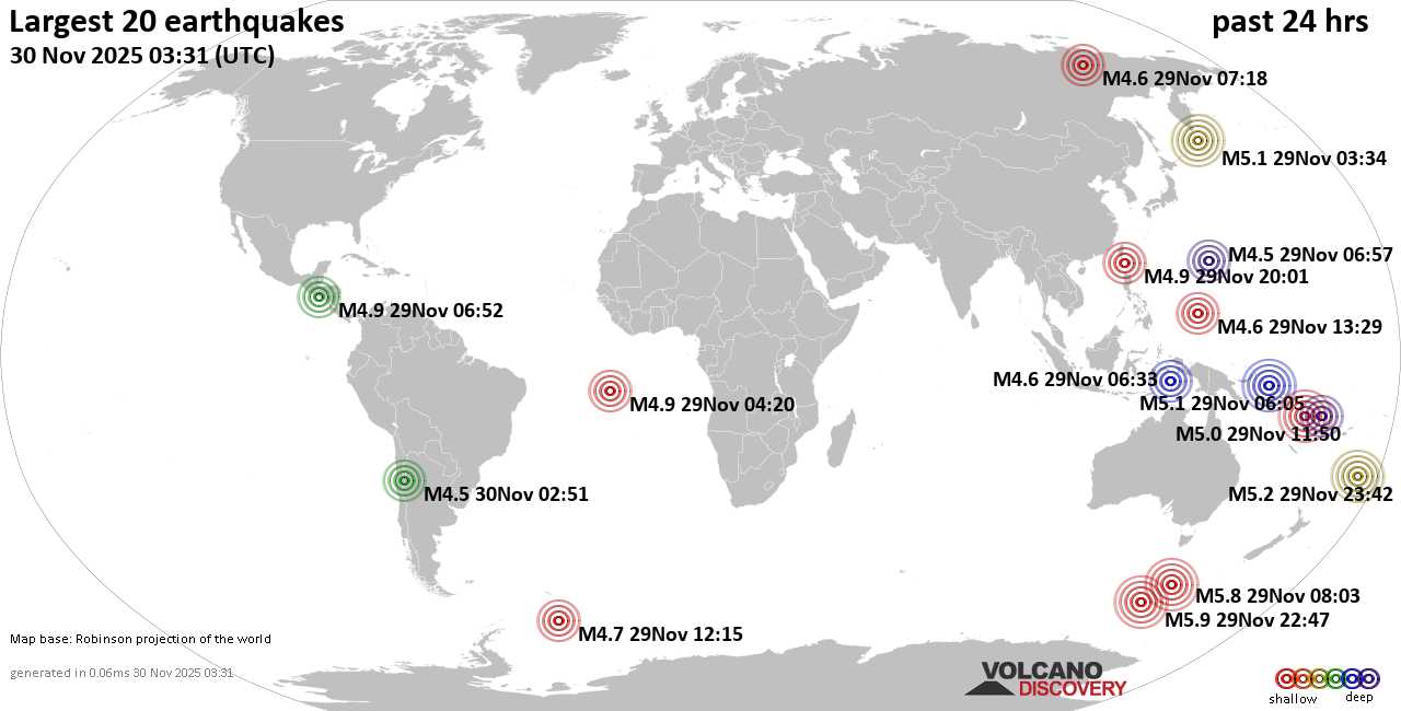 По данным Геологической службы Соединенных Штатов (USGS), ежегодно в мире происходит в среднем около 500000 обнаруживаемых землетрясений, или около 1400 землетрясений в день.