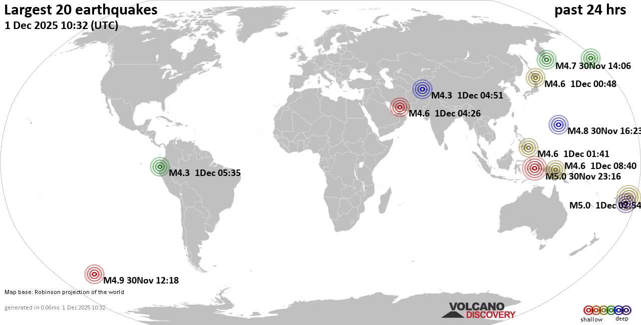 По данным Геологической службы Соединенных Штатов (USGS), ежегодно в мире происходит в среднем около 500000 обнаруживаемых землетрясений, или около 1400 землетрясений в день.