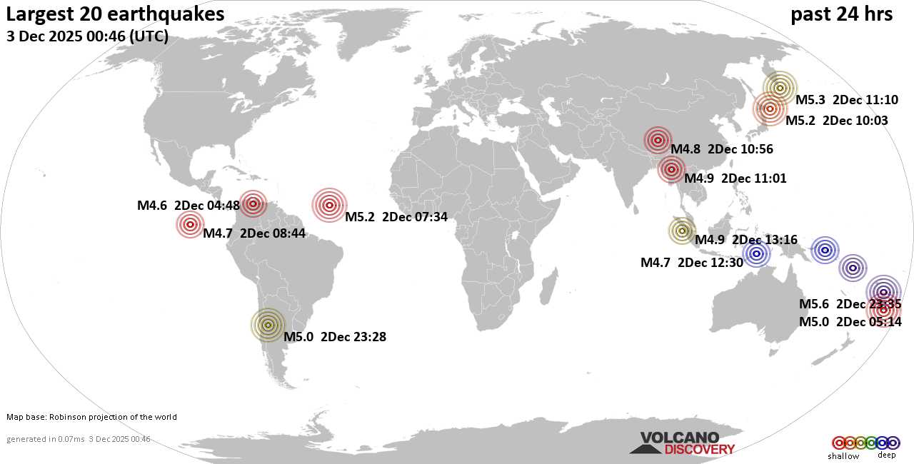 Землетрясения сегодня на карте: последние сильные землетрясения, 3 декабря 2025 года